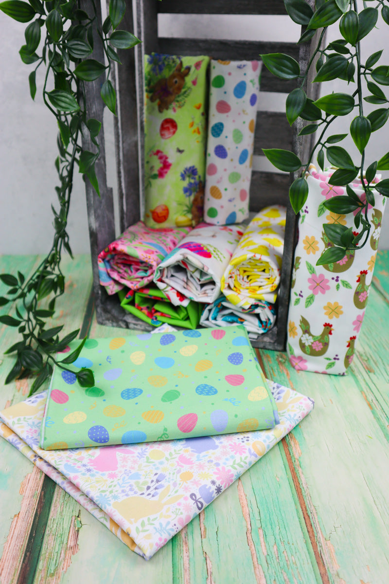 In diesem Stoffpaket findet ihr eine tolle Auswahl aktueller Oster Baumwollstoffe aus unserem Sortiment mit einer Länge von ca. 50-80 cm je Stoff.