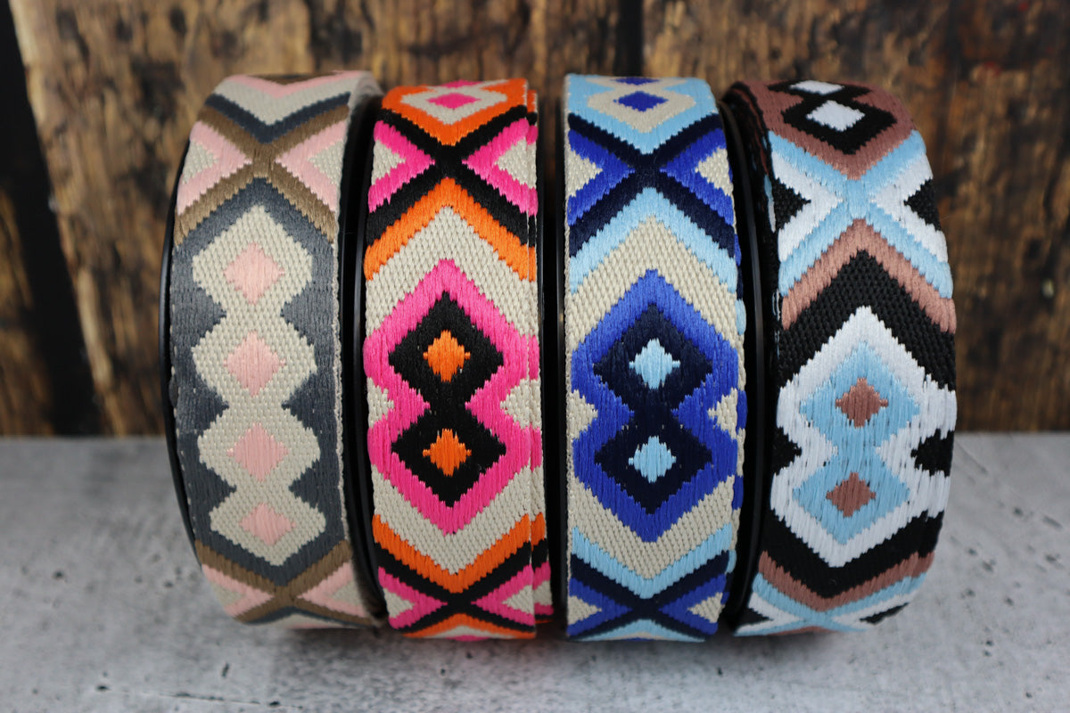 Super stylisches und hochwertiges Gurtband der Firma VENO mit buntem Ethno-Muster.