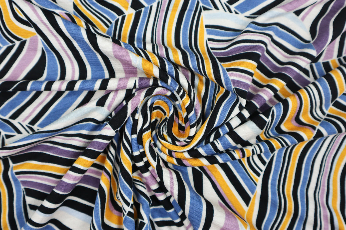 Weicher, trageangenehmer Viskosejersey mit tollem, farbenfrohen Streifendesign.