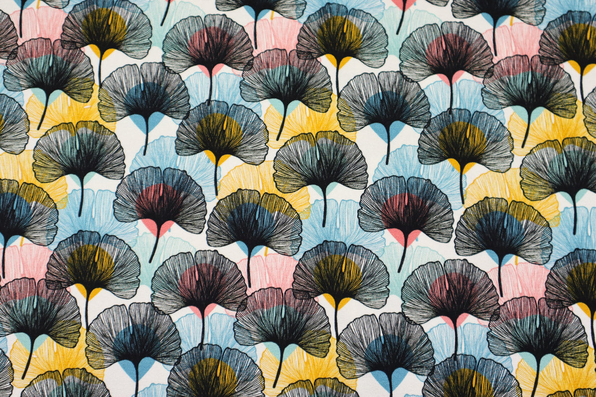 Super schönes Design mit schwarzen und farbigen Ginko-Blättern auf weißem Grund.