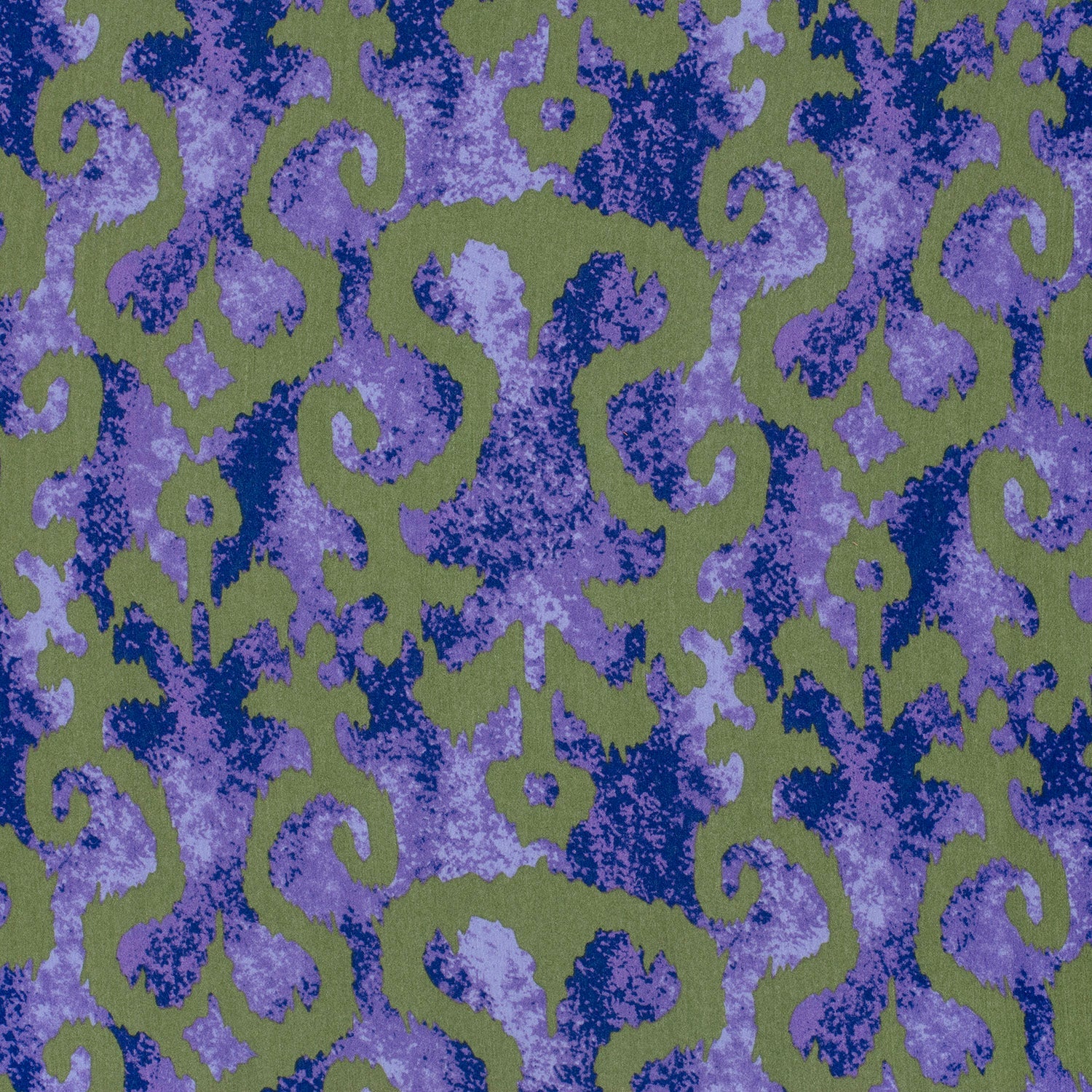 Abstraktes, lilafarbenes Design auf khakifarbenem Grund.