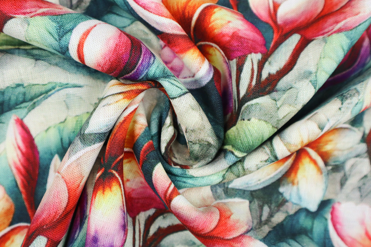 Toller Mix aus Leinen und Viskose mit wunderschönen floralen und abstrakten Designs. Genau das Richtige für leichte Hosen, Röcke, Kleider oder eine luftige Tunika.