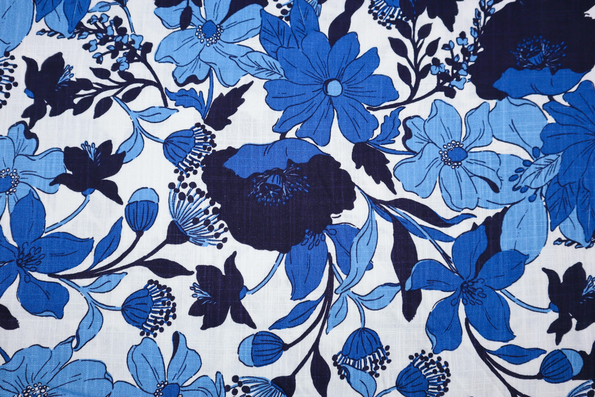 Trendiges Blumen- und Blütenmuster in unterschiedlichen Blautönen.
