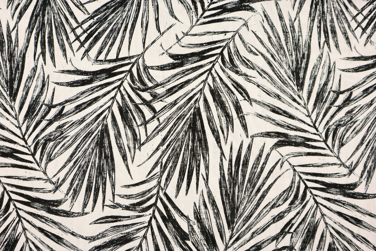 Trendiges Muster mit schwarzen Farnblättern auf naturweißem Hintergrund.