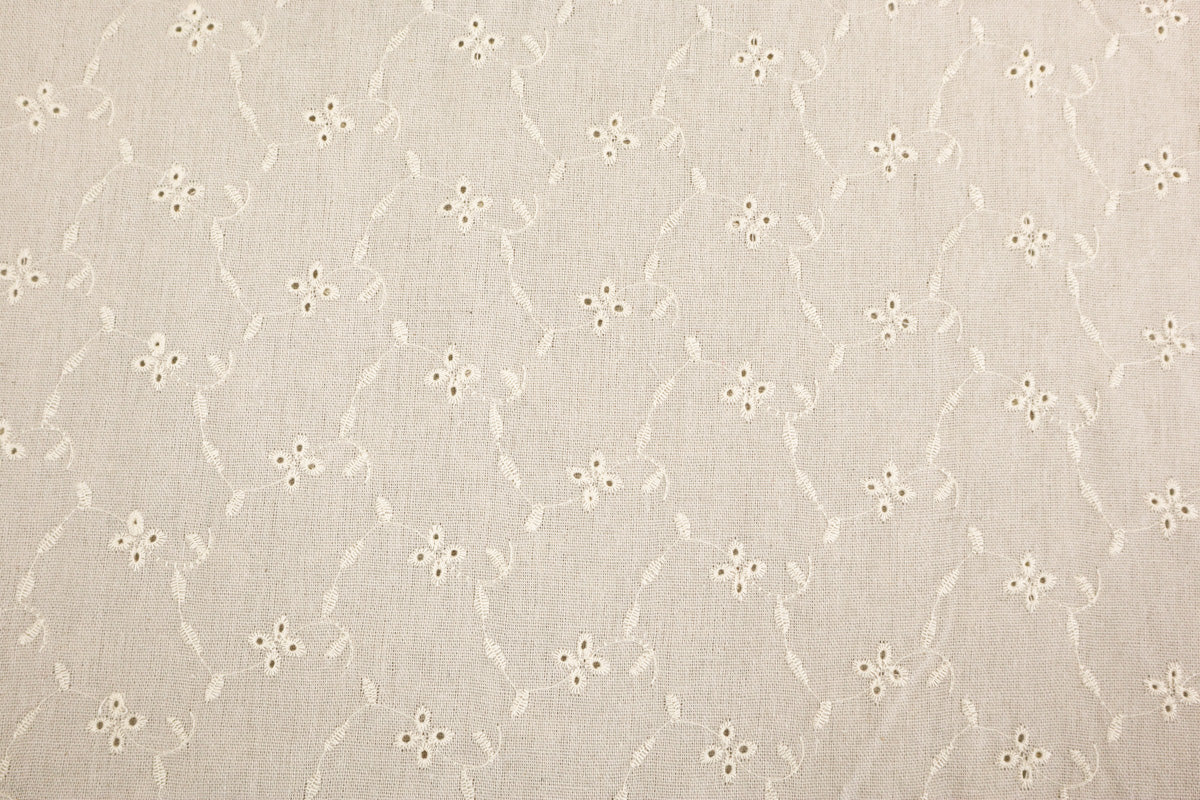 Toller Mix aus Leinen und Viskose mit eleganter Lochstickerei und bestickter Webkante – genau das Richtige für leichte Hosen, Röcke, Kleider oder eine luftige Tunika.