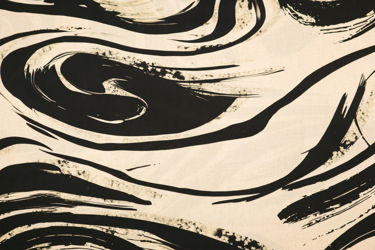 Trendiges Muster mit schwarzen Wellen auf naturfarbenem Hintergrund.