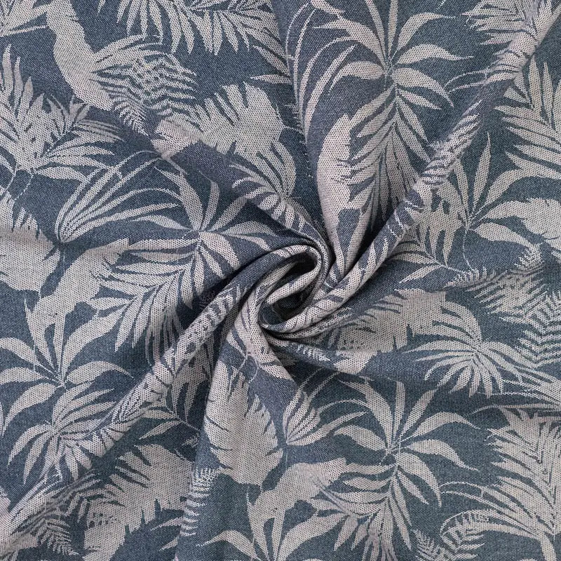 Leicht fallender Viskose Mix mit Palmblättern im Denim Look.