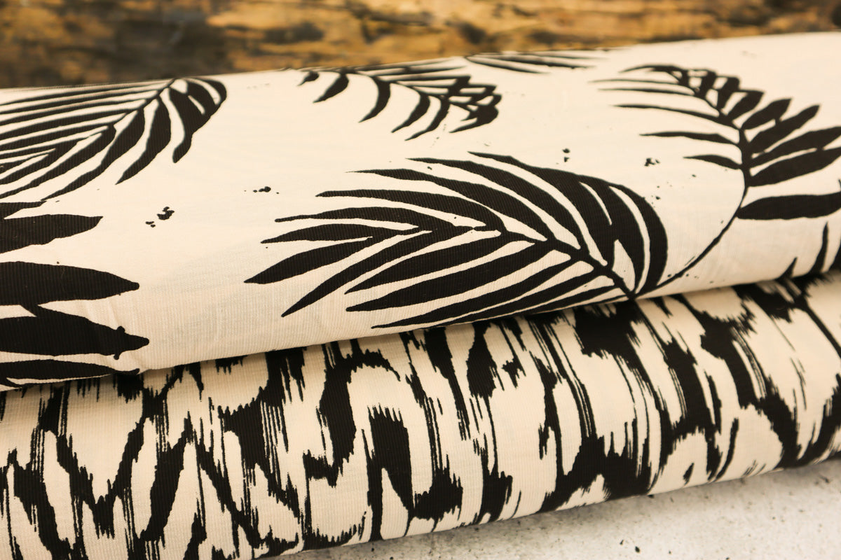 Leicht fallender Viskose - Mix mit schwarzem Muster.