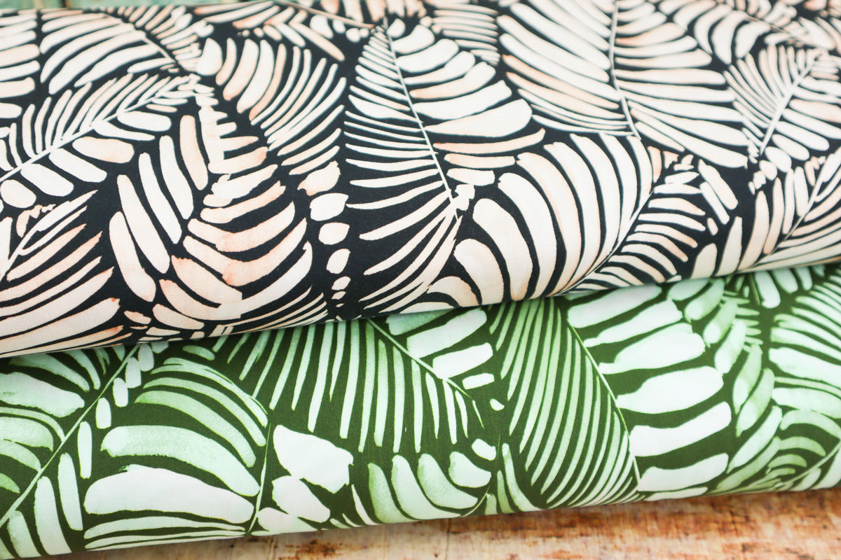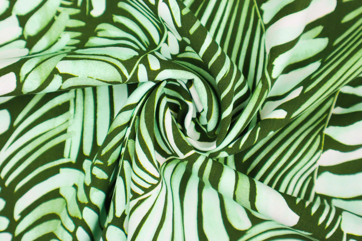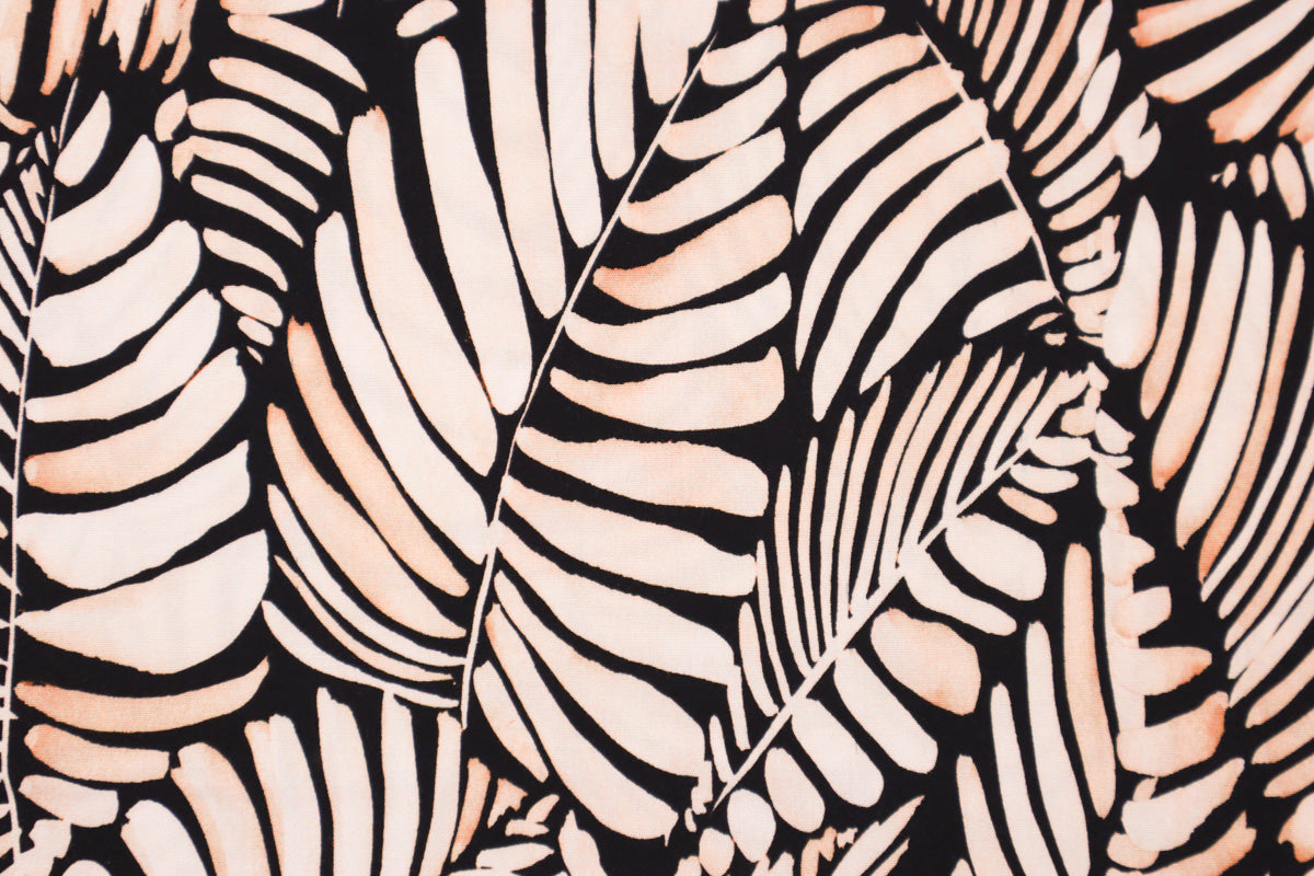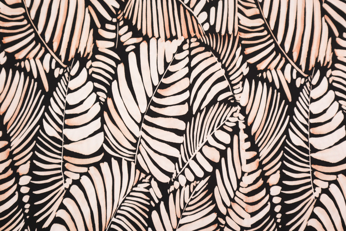 Wunderschöner Viskose-Stretch Stoff mit trendigem Blätter Muster in leichter , weich fallender Qualität.