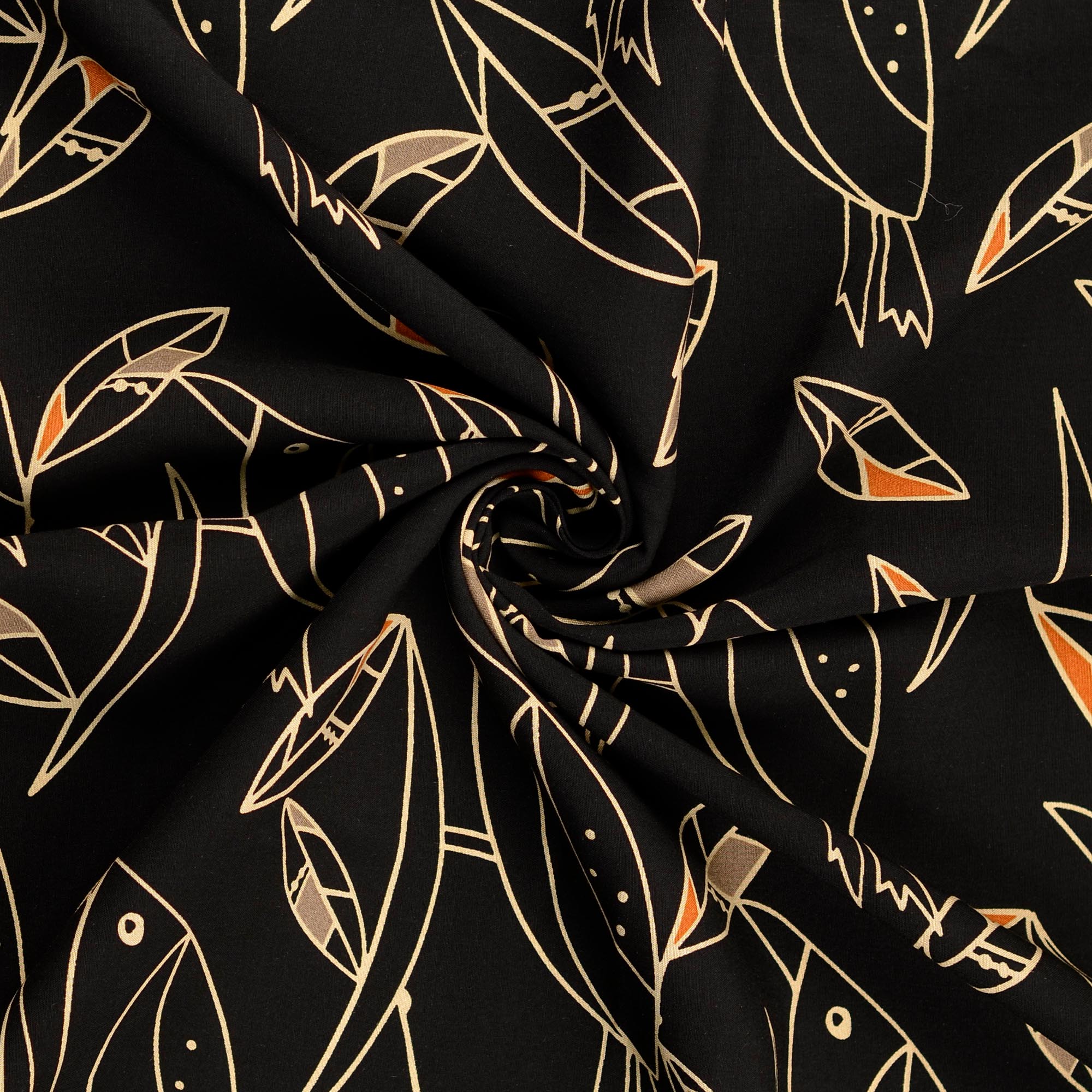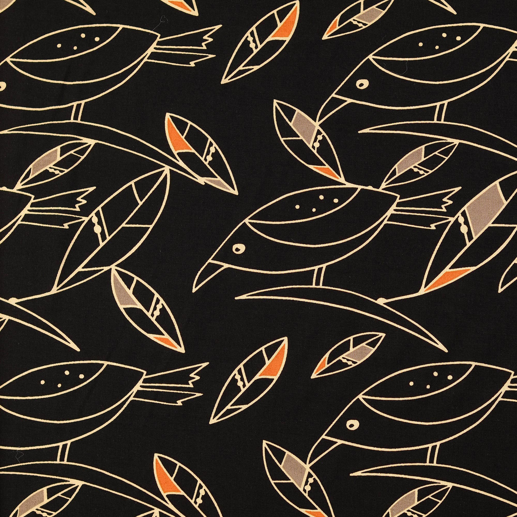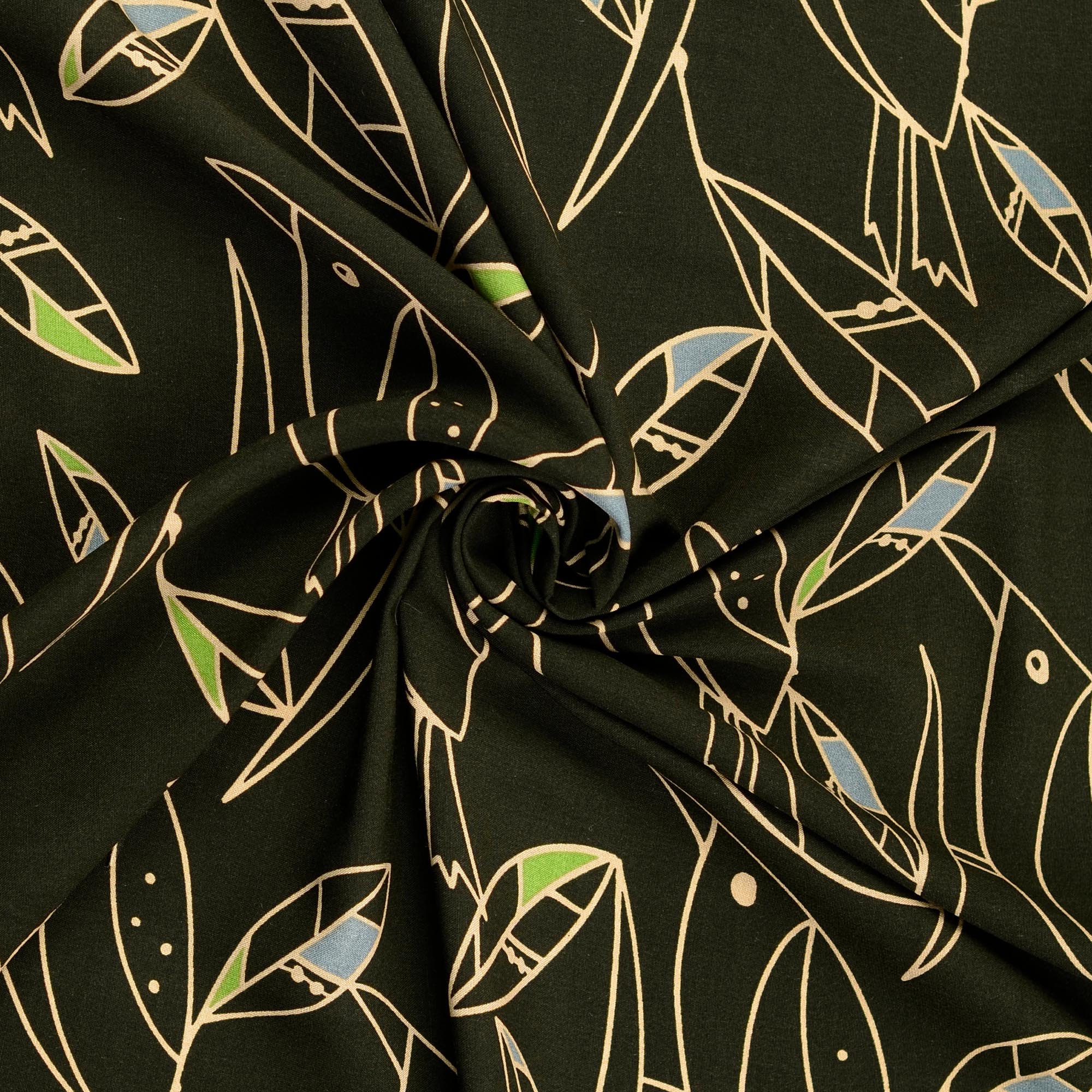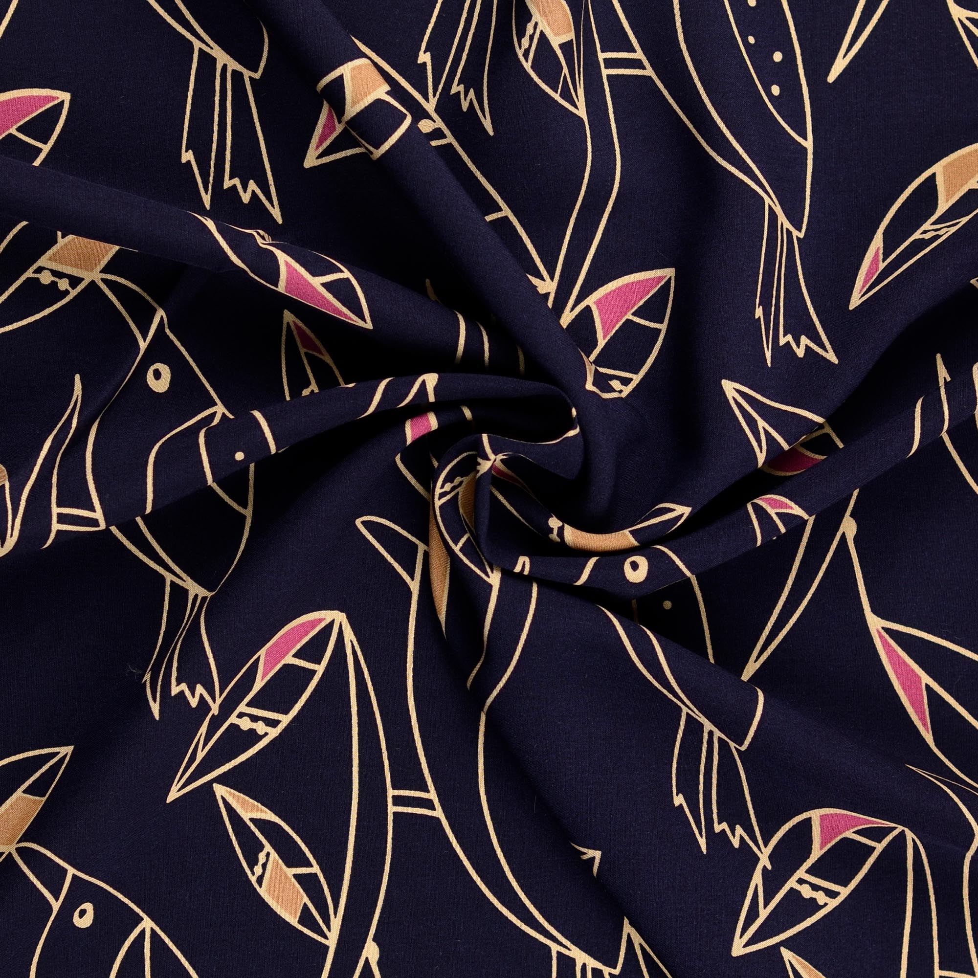 Super schöne Viskose Webware mit Vögeln im abstrakten Design.