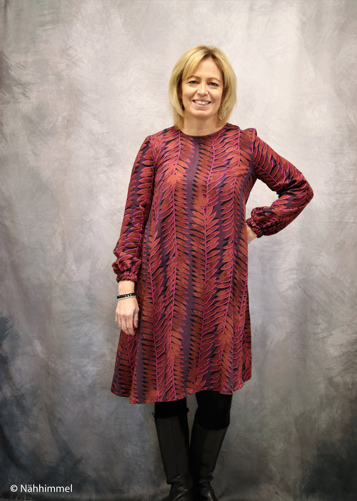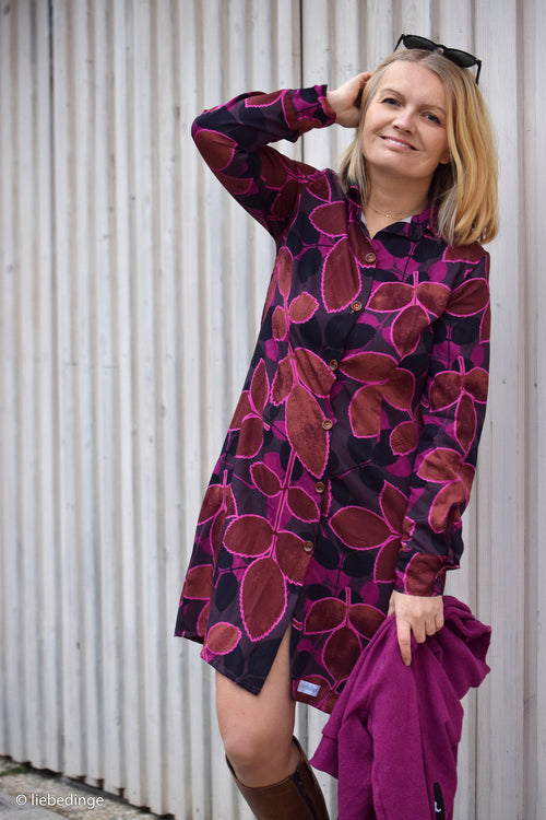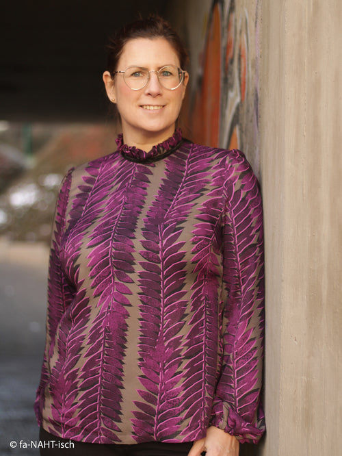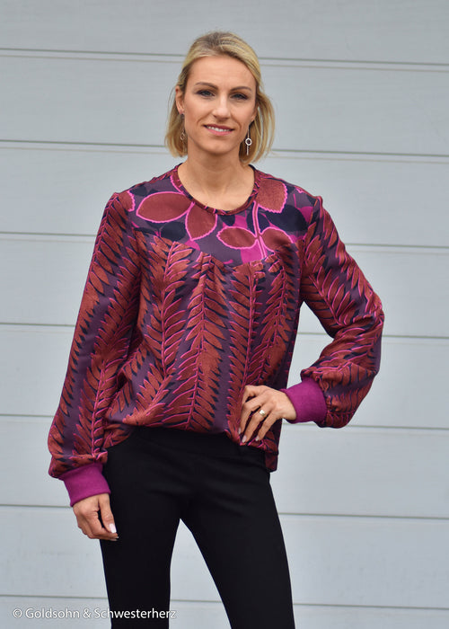 Ob als Bluse, Rock, Blousons, Hose und vielem mehr – das gestempelte Blätterdesign auf der griffigen Viskosequalität lässt sich super mit anderen Stoffen zu ganzen individuellen Herbst-/Winteroutfits kombinieren!