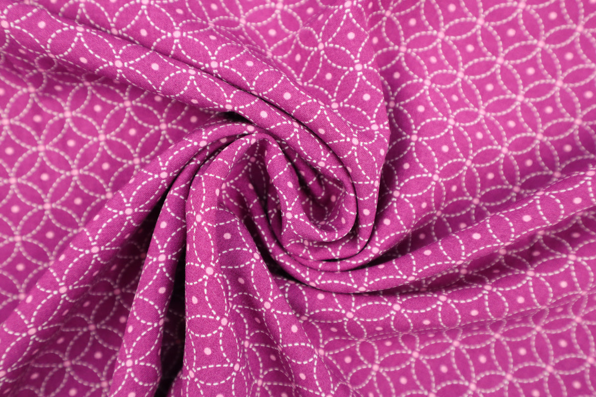 Super schöne, Viskose Webware mit Kreisen und Punkten in schönem Beereton.