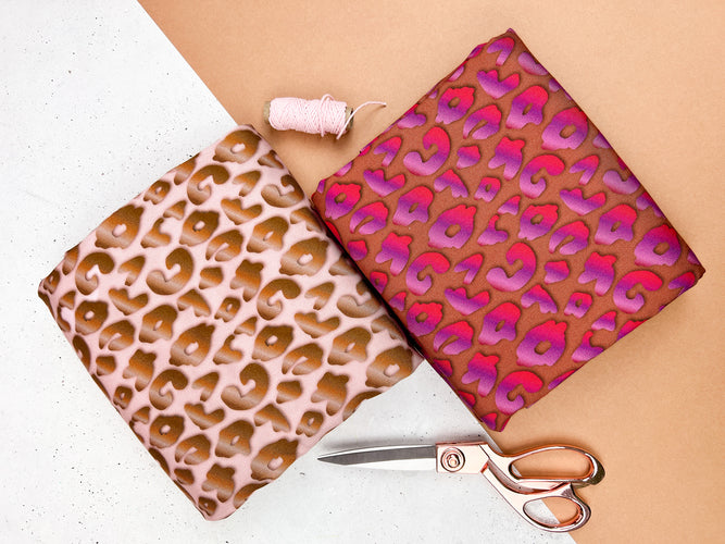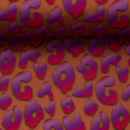Viskosewebware Shine Leo begeistert durch den stylischen Leo-Print, der wirklich zu glänzen scheint – für glänzende Auftritte! In dezentem Hellrosa mit Leoprint in Braun-Kupfer und ausdrucksstarkem Terracotta mit Pink-Lila Leomuster.