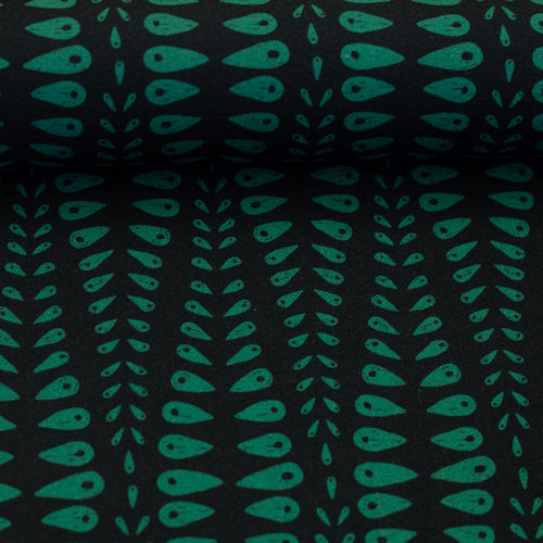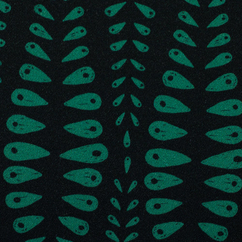 Trigo gibt es in drei Farbstellungen: Smaragd auf Anthrazit, Natur auf Schwarz und Schwarz auf Aubergine. So schön in Kombination mit Viskosewebware Molina!