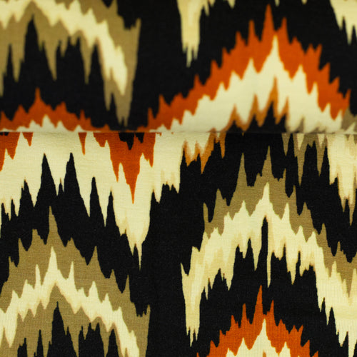 Das ethnisch inspirierte Chevron-Muster in warmen Erdtönen wie Beige, Braun und Schwarz – ist so schön für einen klassischen oder boho-inspirierten Stil.