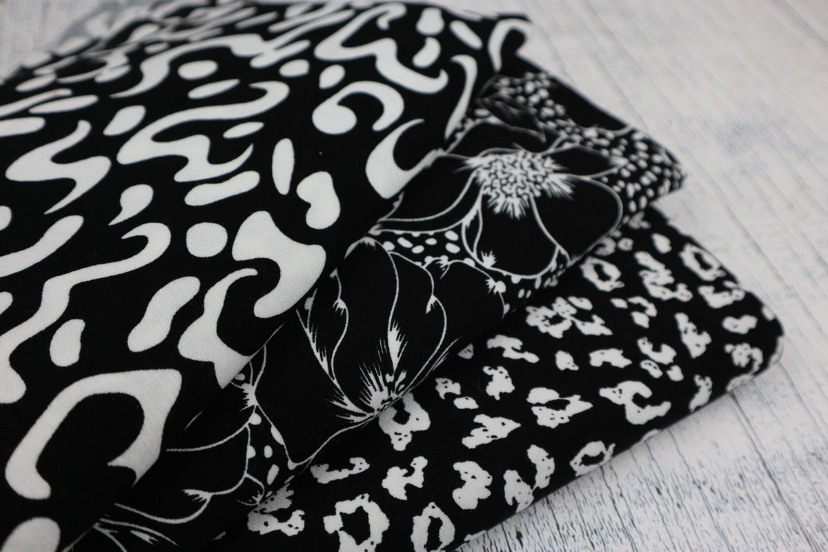 Weicher, trageangenehmer Viskosejersey in schwarz/weiß.