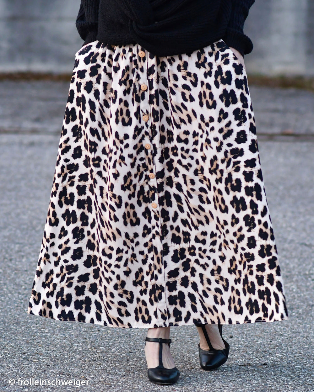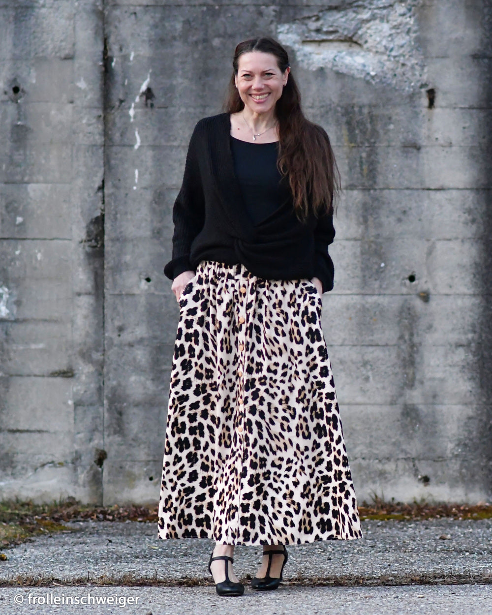 Das tolle Leodesign gibt es auch auf Viskosewebware – auf farbigem Grund in Dunkelblau, Grün und Aubergine und im klassischen Beige/Camel mit kleinerem und XXL-Leomuster. Alle wirken so toll und ganz unterschiedlich! Welches ist dein Favorit?