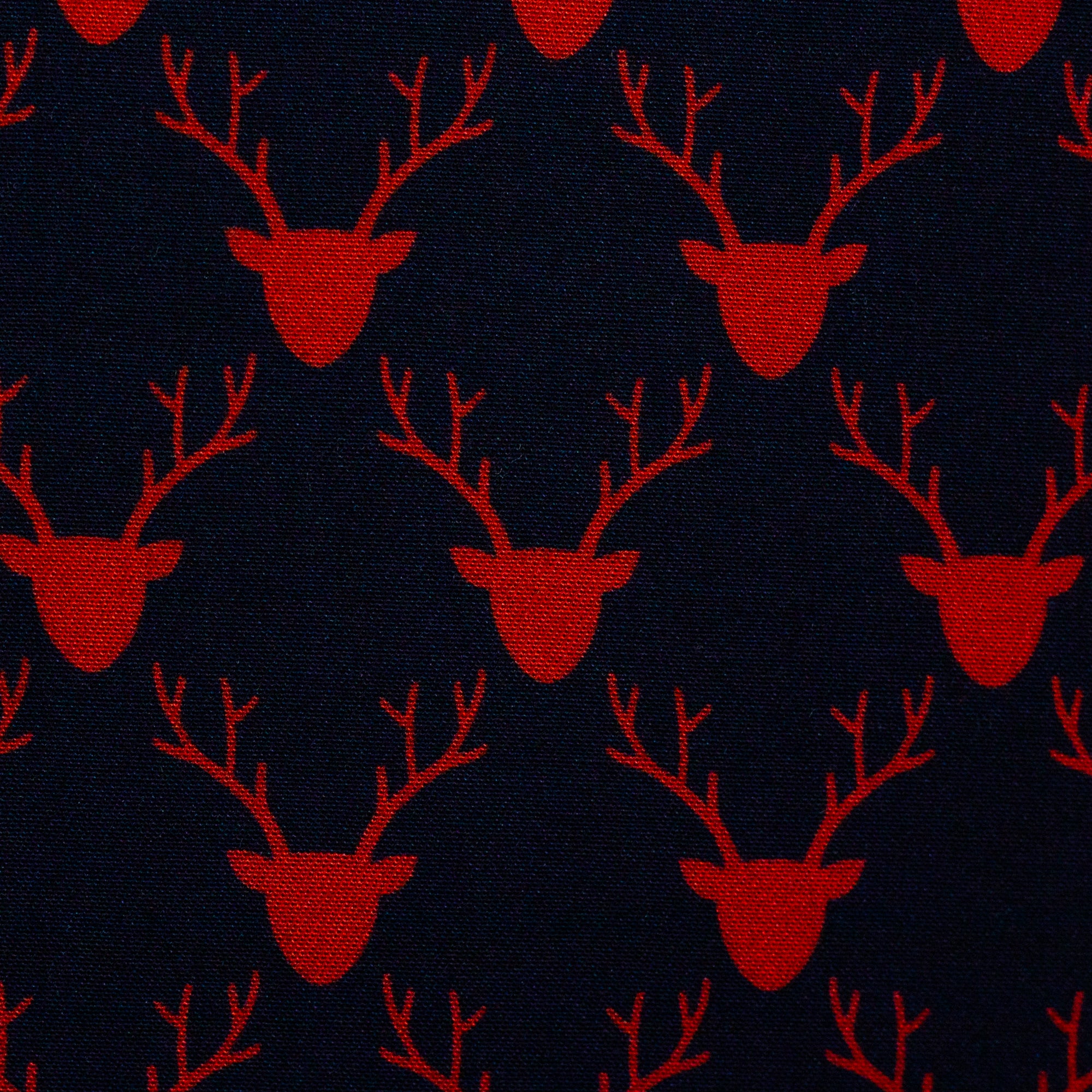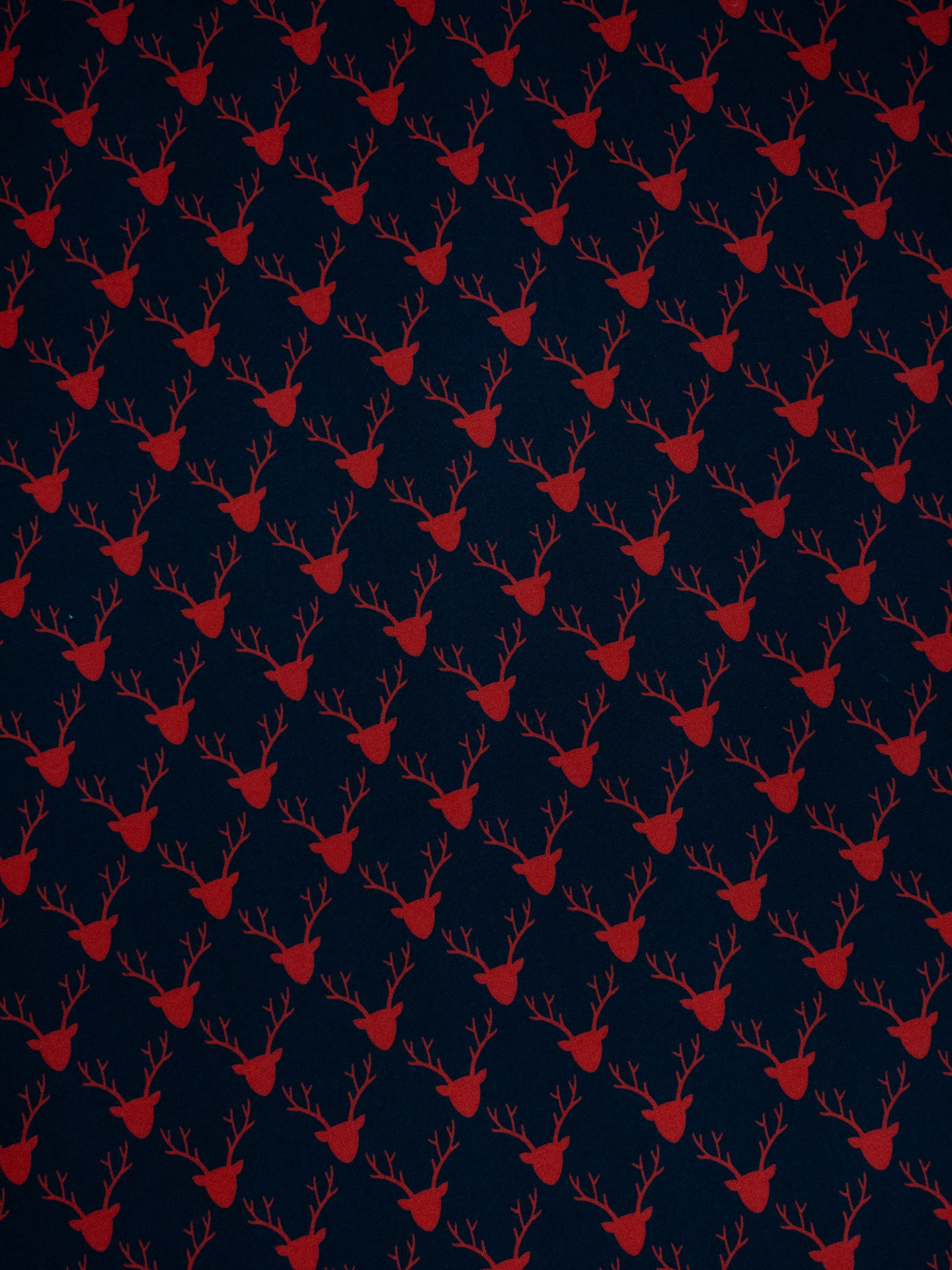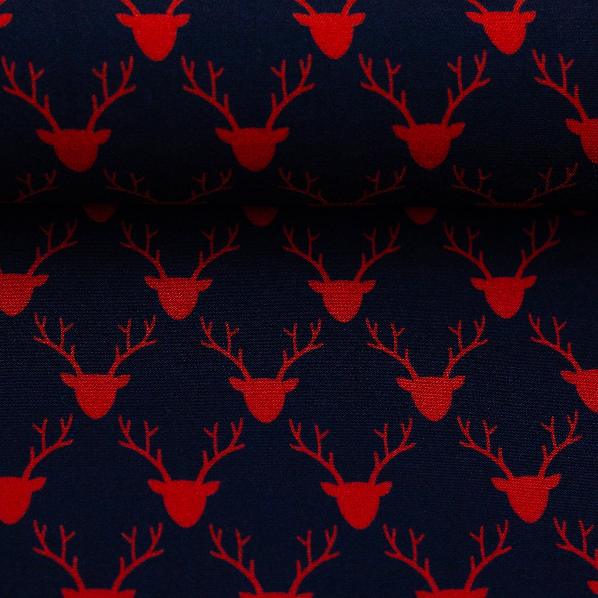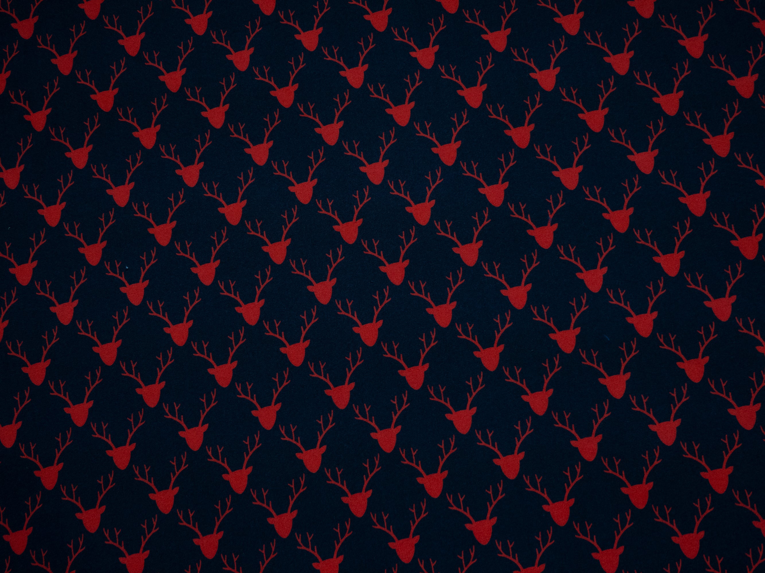 Auch unterm Weihnachtsbaum geht nichts ohne Viskosewebware. Das schöne, edle Design ist mal etwas ganz anderes zur Weihnachtszeit – als Alternative zum Christmas Sweater haben wir nun eine schöne dunkelblaue Viskose mit roten Hirschen oder Rentieren darauf.