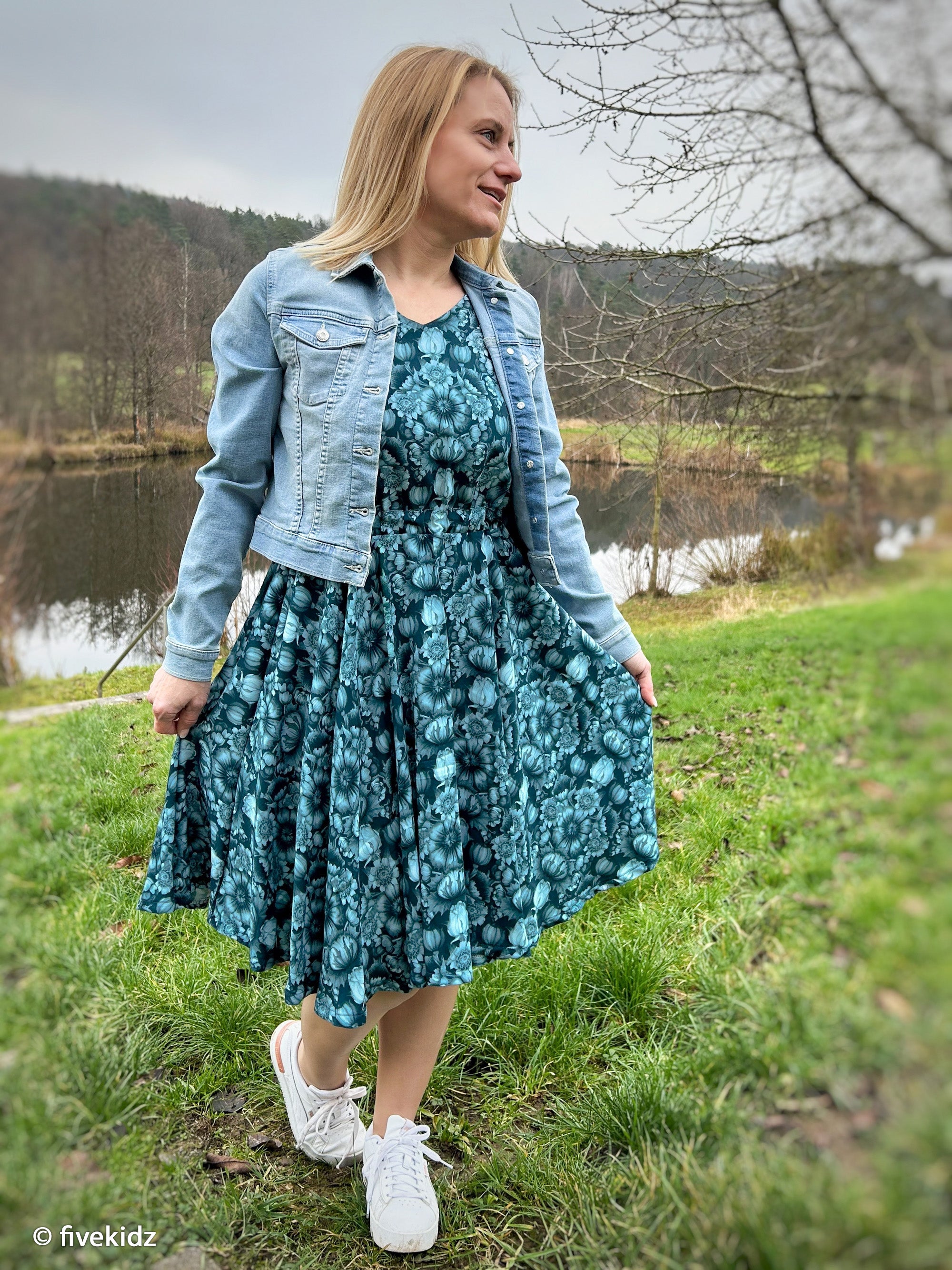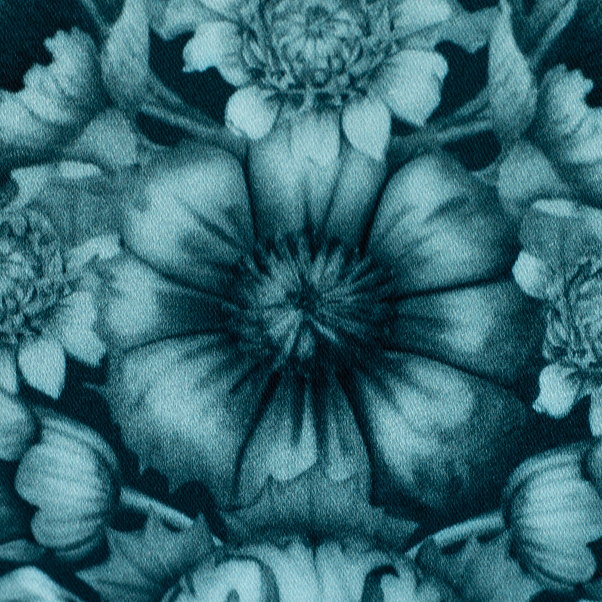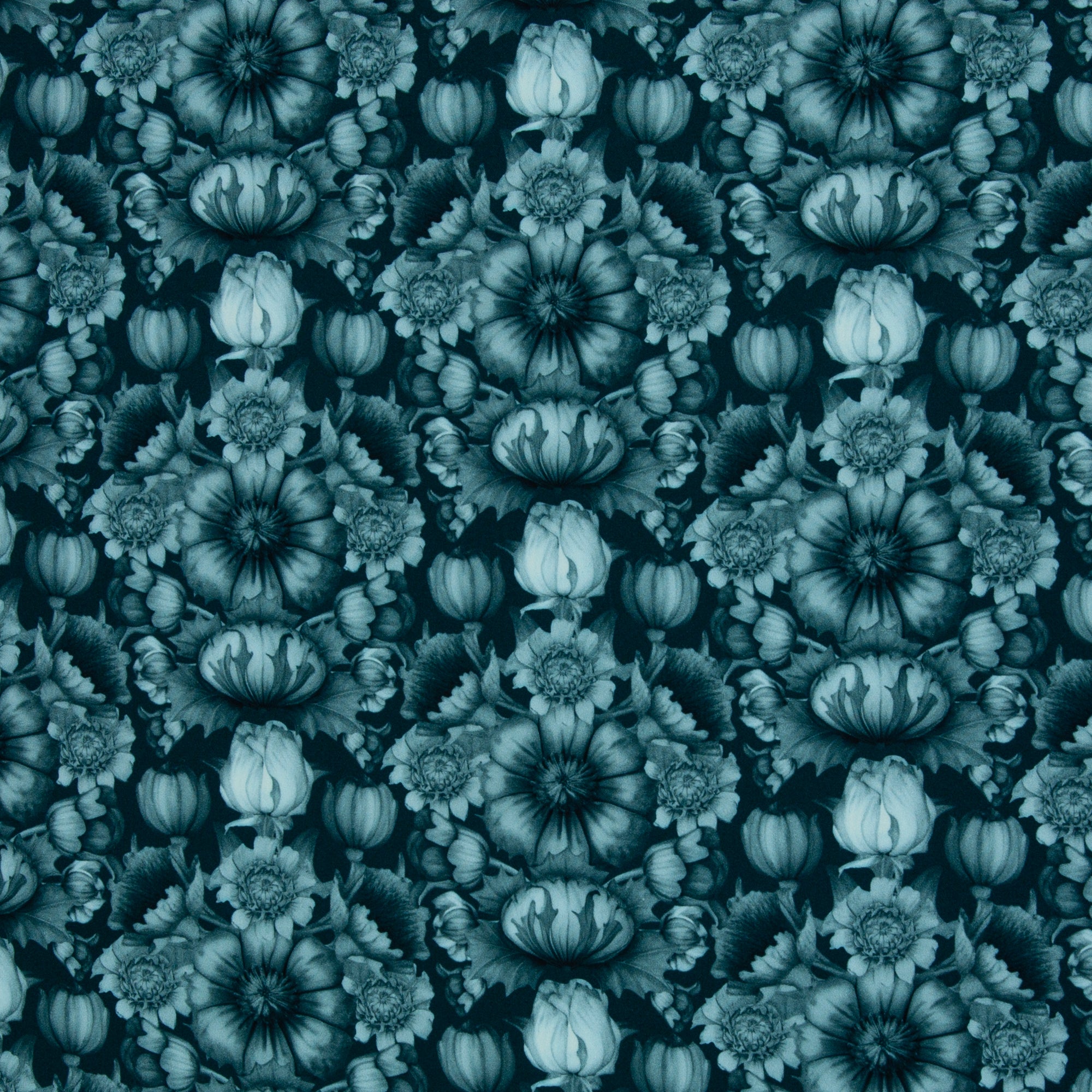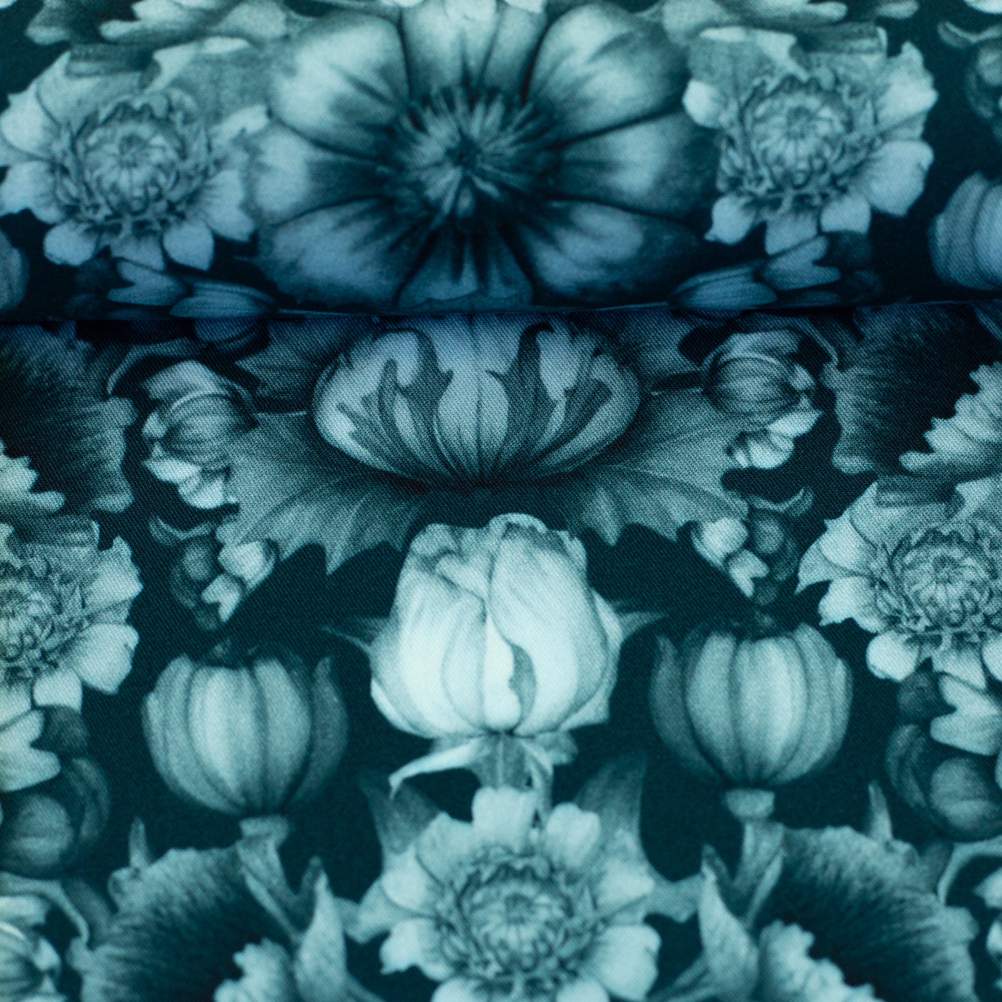 Die ornamentalen, viktorianischen Blumendesigns kommen auf der Viskosewebware so schön zur Geltung. Hier sind die Victorian Flowers getinted / eingefärbt und erstrahlen Ton in Ton in Bordeaux-Altrosa, Jeansblau-Petrol und Smaragd/Petrol.