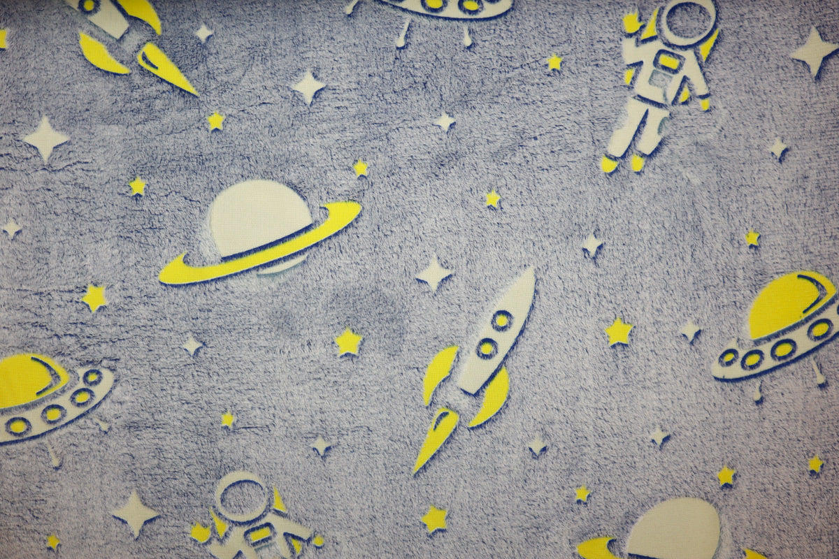 Der Clou an diesen Stoff - das Muster leuchtet im Dunkeln.