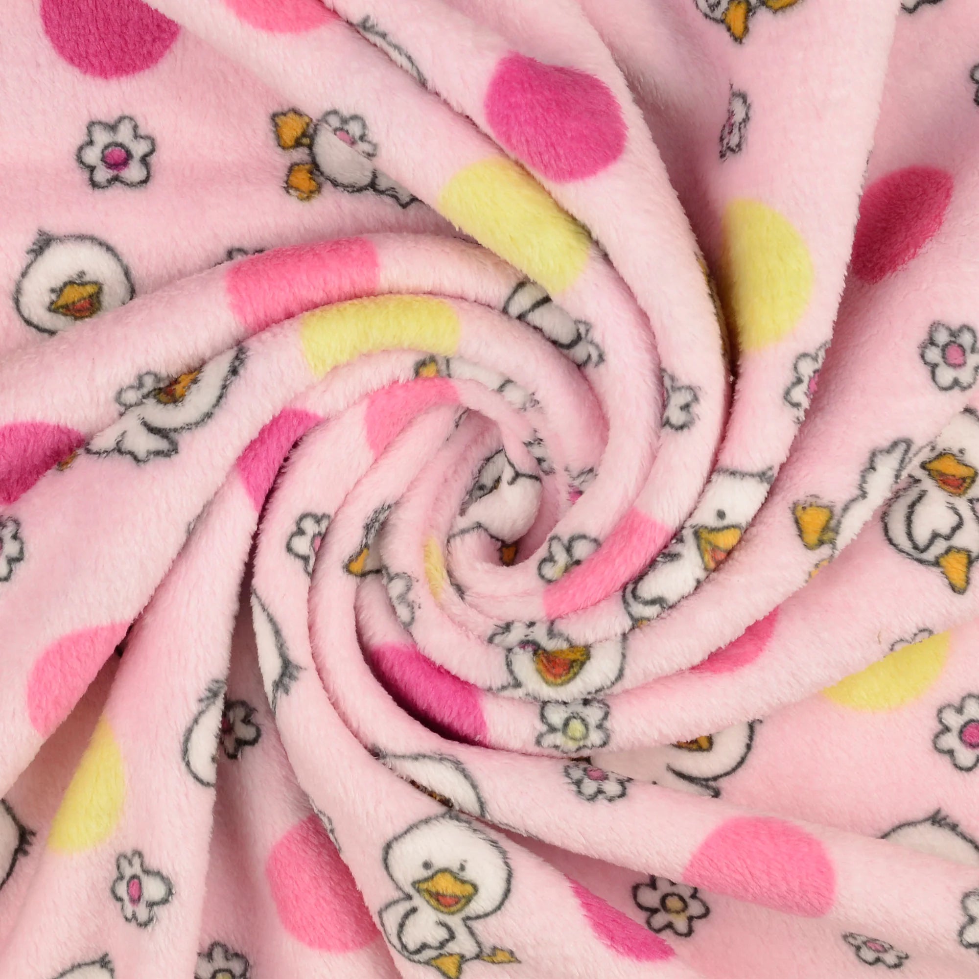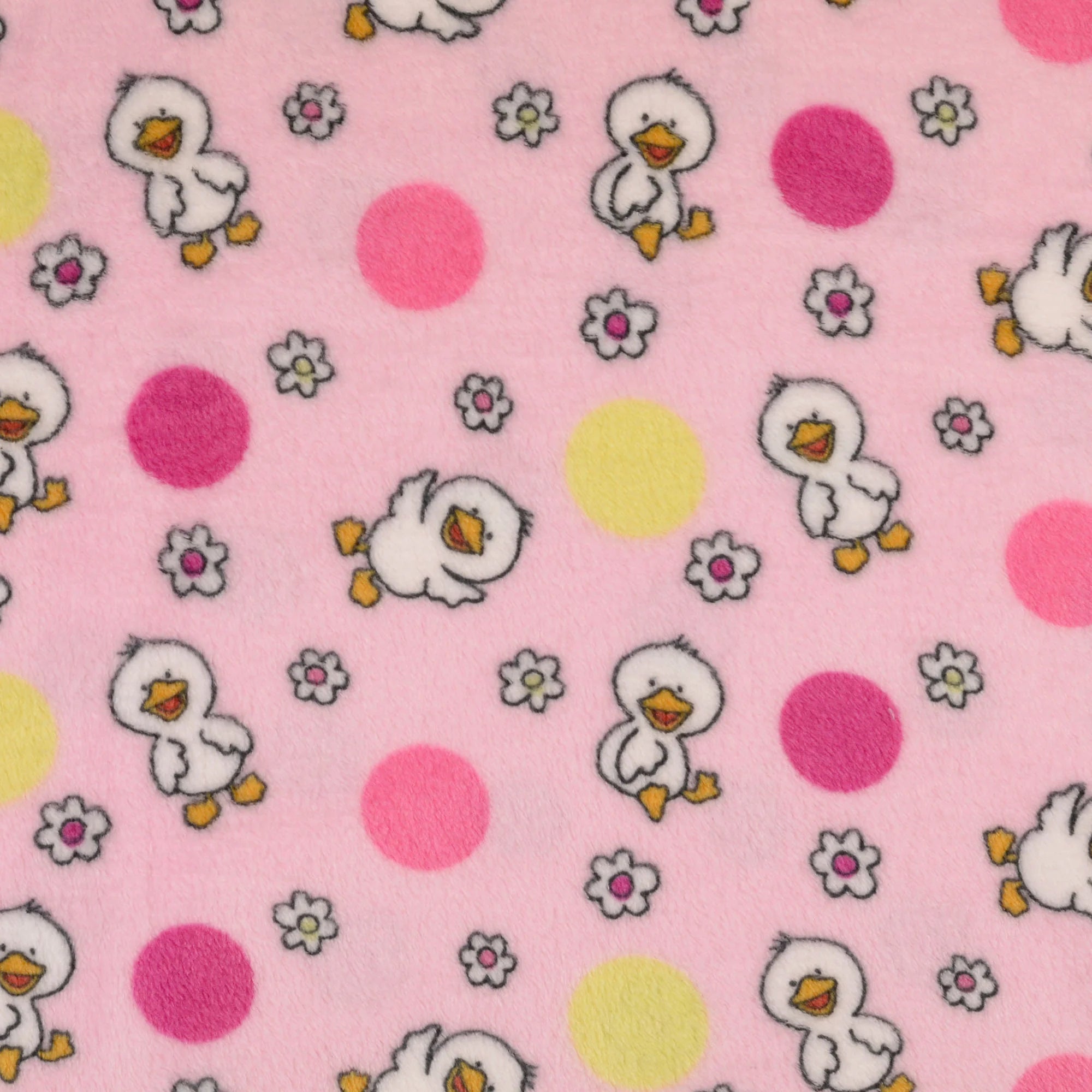 Super flauschiger, kuschelig weicher Microfleece für Kinder mit kleine Entenküken, Blumen und Tupfen.
