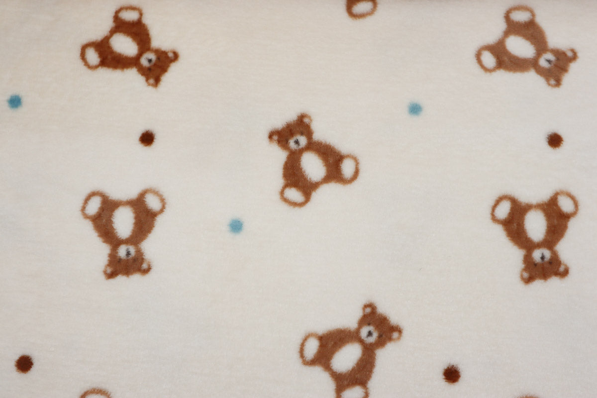 Niedlicher, kuschelig weicher Wellness Fleece mit niedlichen Teddybären auf wollweißem Grund.
