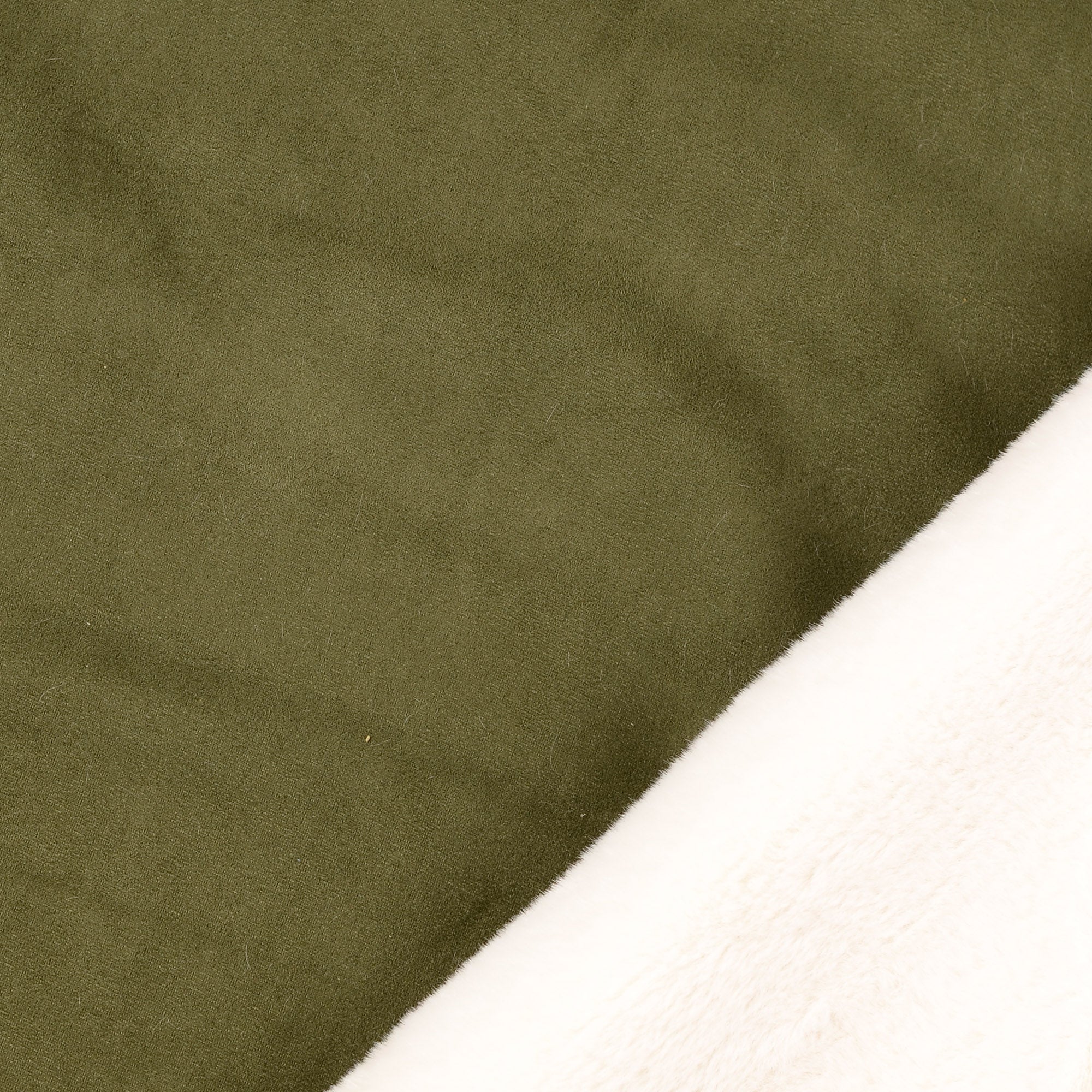 Kuschelig weiches Wildlederimitat mit flauschiger Fellabseite.