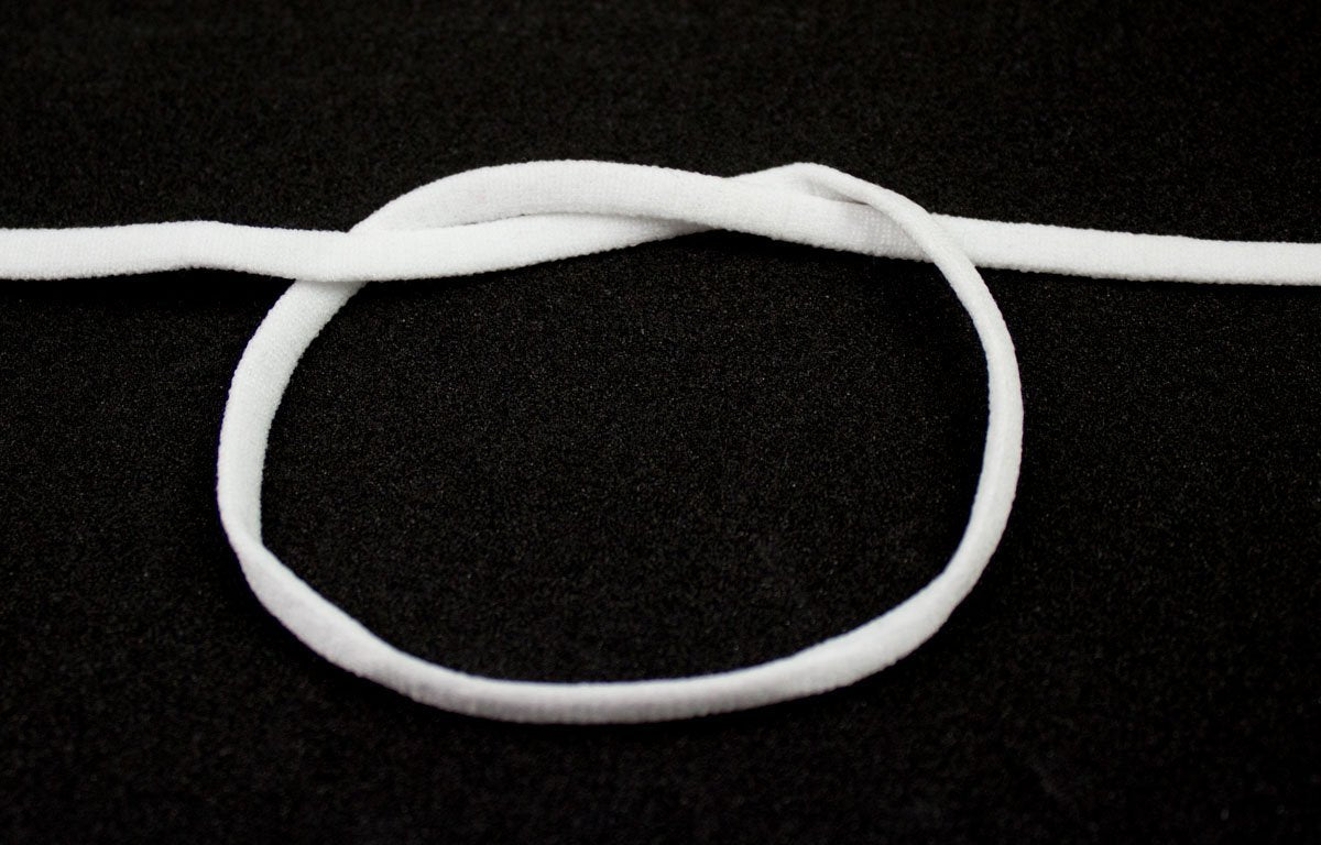 Leichtes gerundetes Gummiband in weiß. Durch eine sehr weiche Haptik ist das Gummiband besonders angenehm zu tragen. Ideal für Mund-Nasen-Masken.