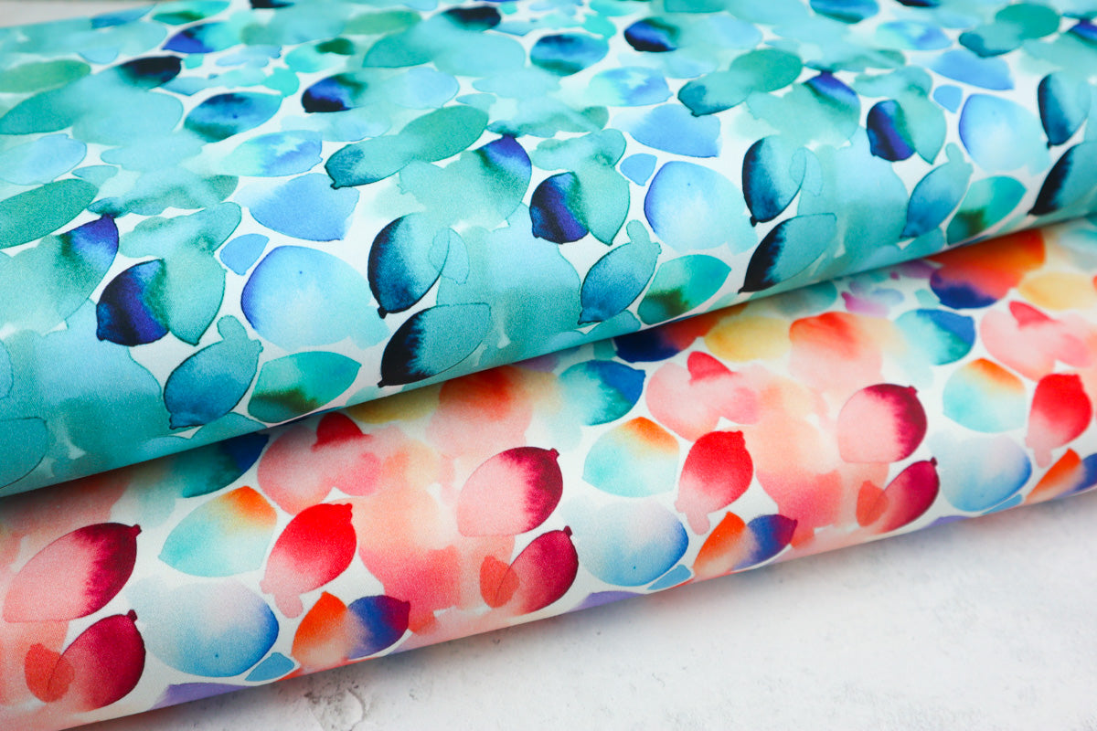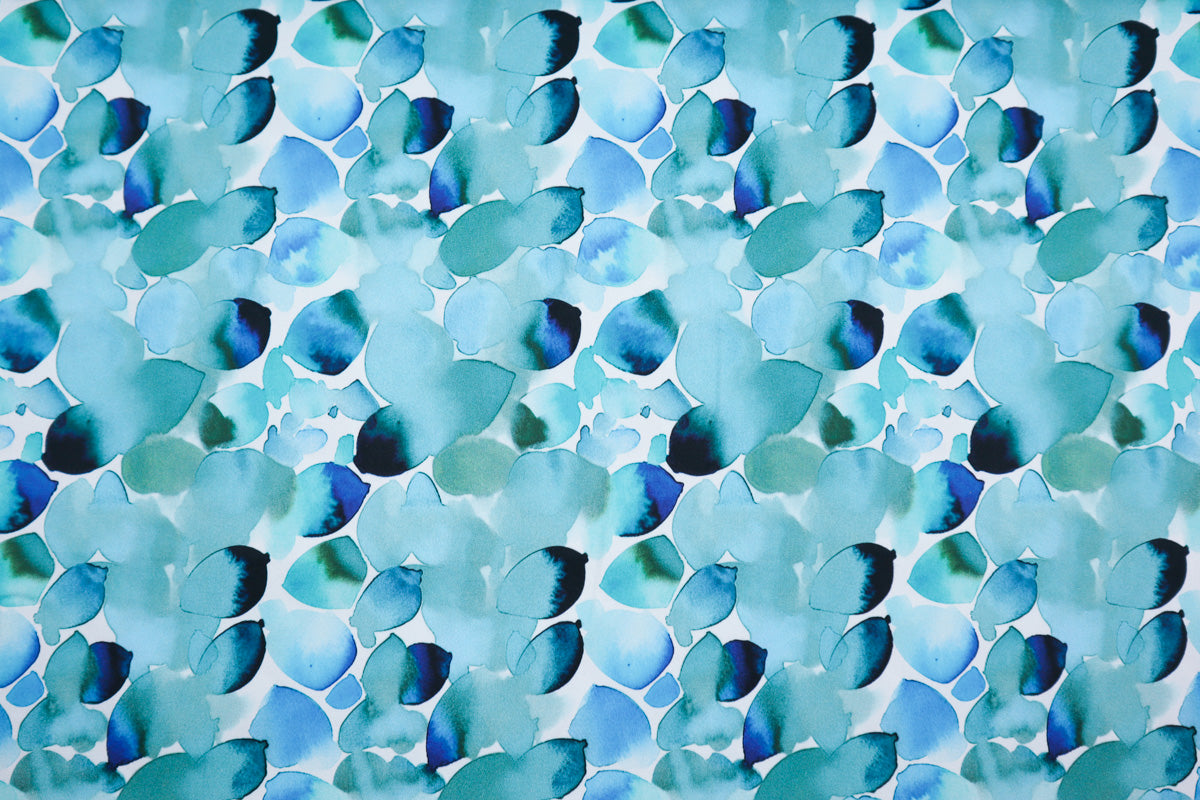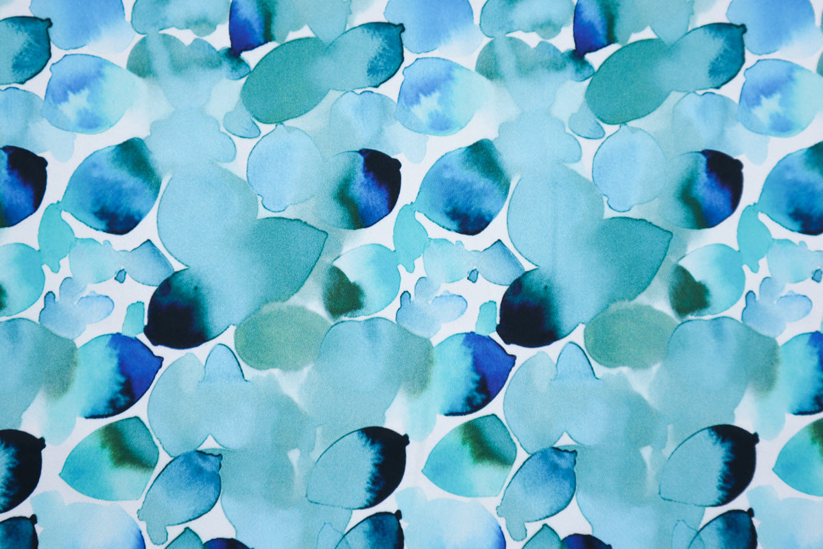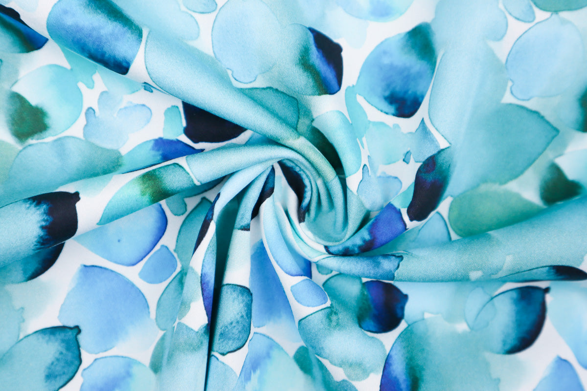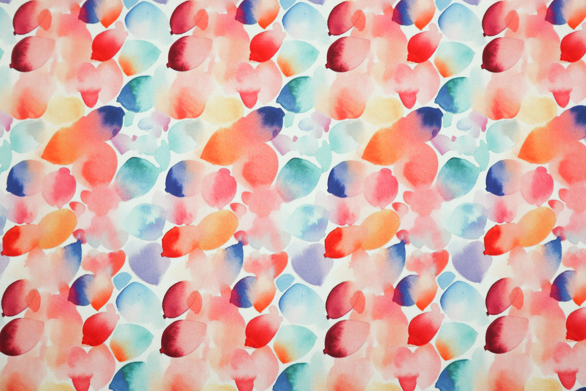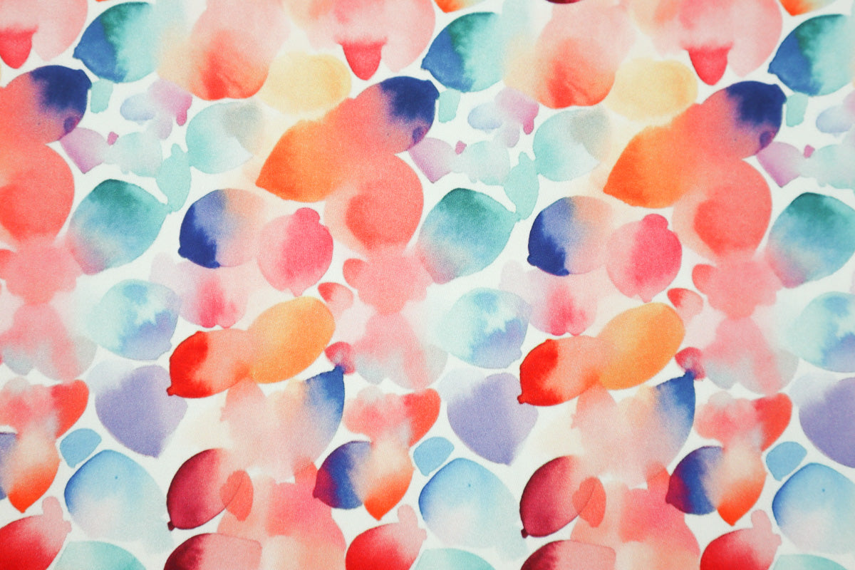 Super schöner, leichter Stretch-Satin mit buntem Muster in Aquarellfarben.