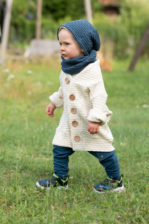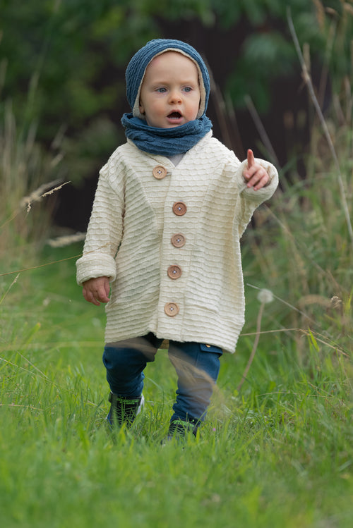 Der reine Baumwollstrick Charlotte mit dem schönen Wabenmuster hat uns sofort überzeugt.