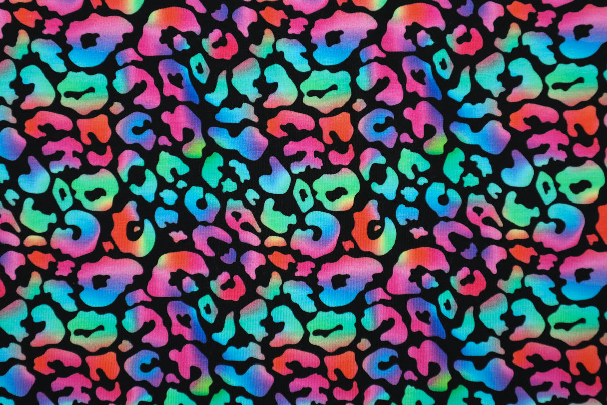 Baumwoljersey Mandy besticht durch sein farbenfrohes Leo-Muster.