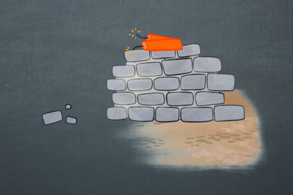 Auf der Rückseite findet ihr die Steinmauer mit den Dynamitstangen , Höhe von 12 cm.