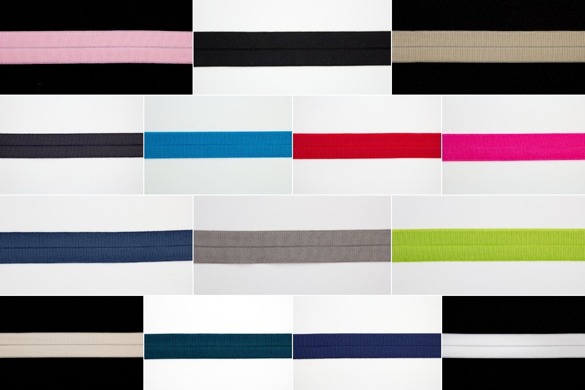 Elastisches Gummiband mit Faltkante in vielen verschiedenen Farben.