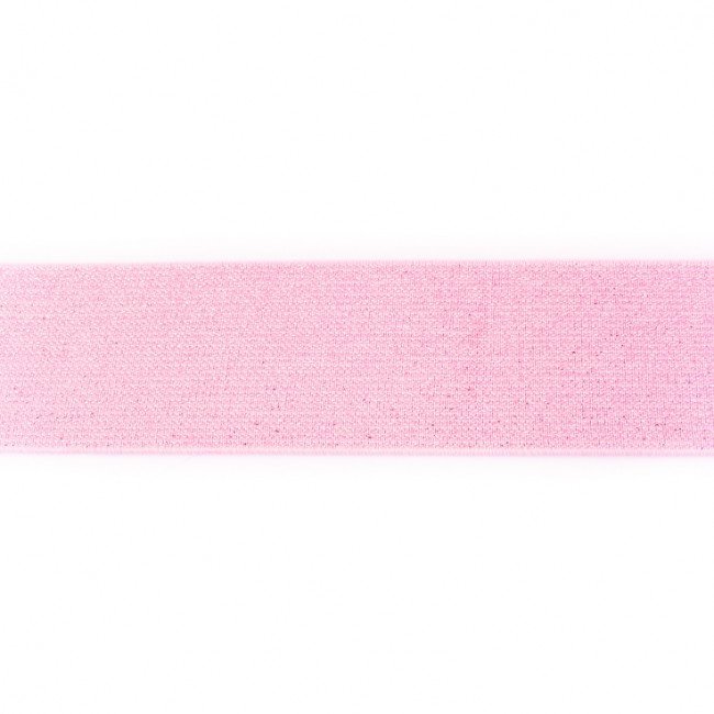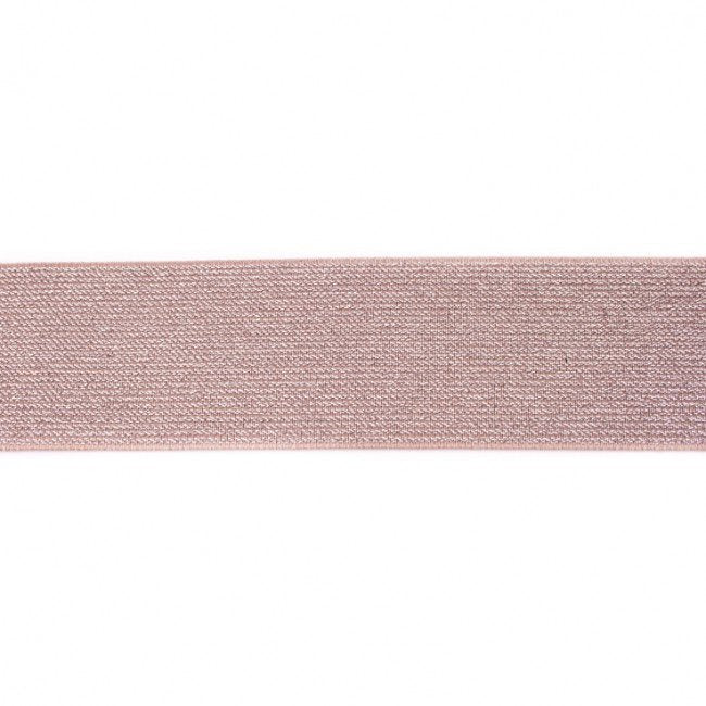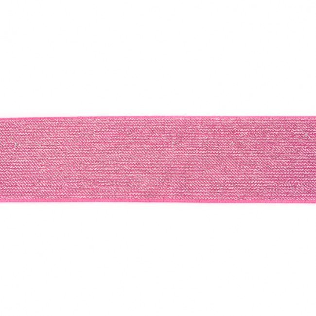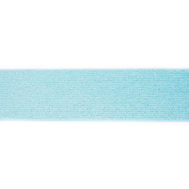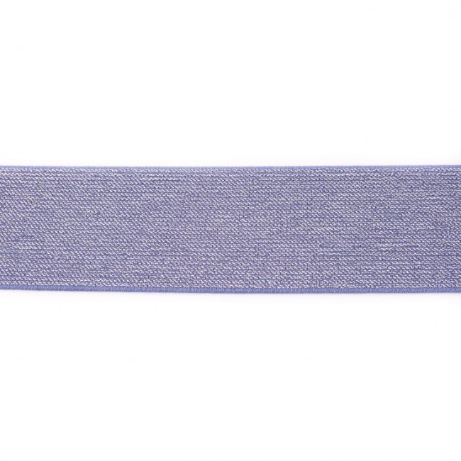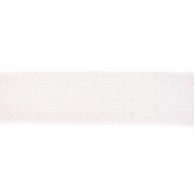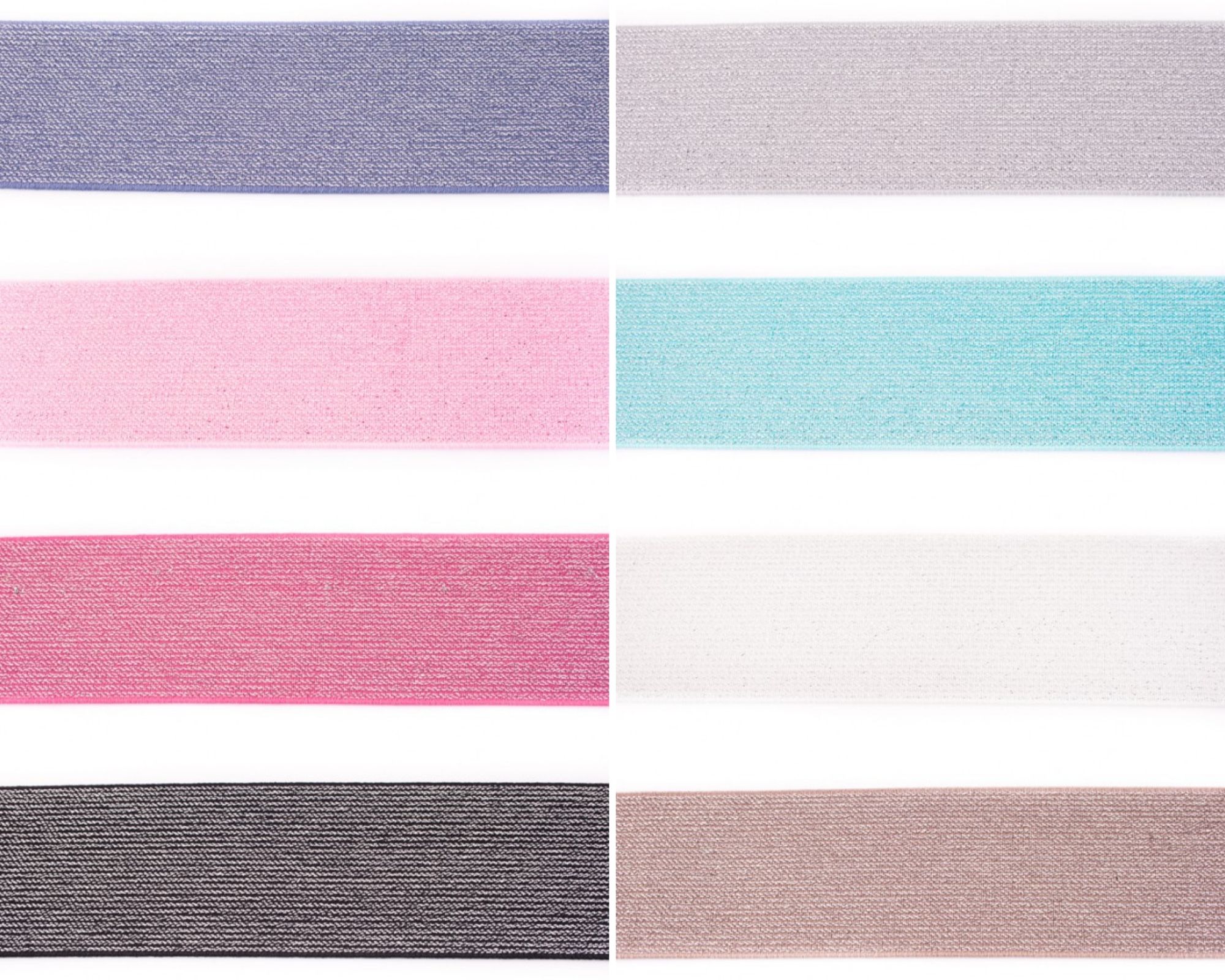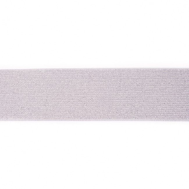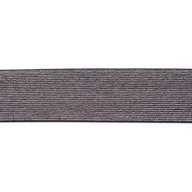 Breites stylisches Gummiband für dein nächstes Nähprojekt. In das Gummiband sind auf der einen Seite glitzernde, silberne Metallic-Fäden eingearbeitet.