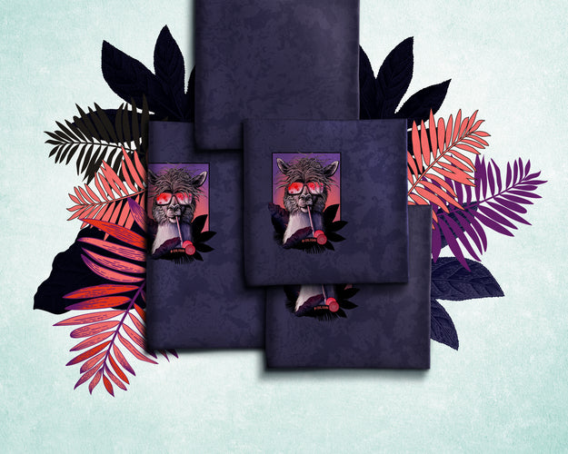 Der strukturierte lila-blaue Untergrund hebt sich sehr gut vom Motiv ab und lässt sich perfekt mit dem Panel oder solo zu lässigen Sommerbasics vernähen. Es gibt das Alpaka-Panel und den passenden Allover-Jersey. So bleibst du auch im Sommer richtig cool! Panelhöhe: ca. 80 cm.