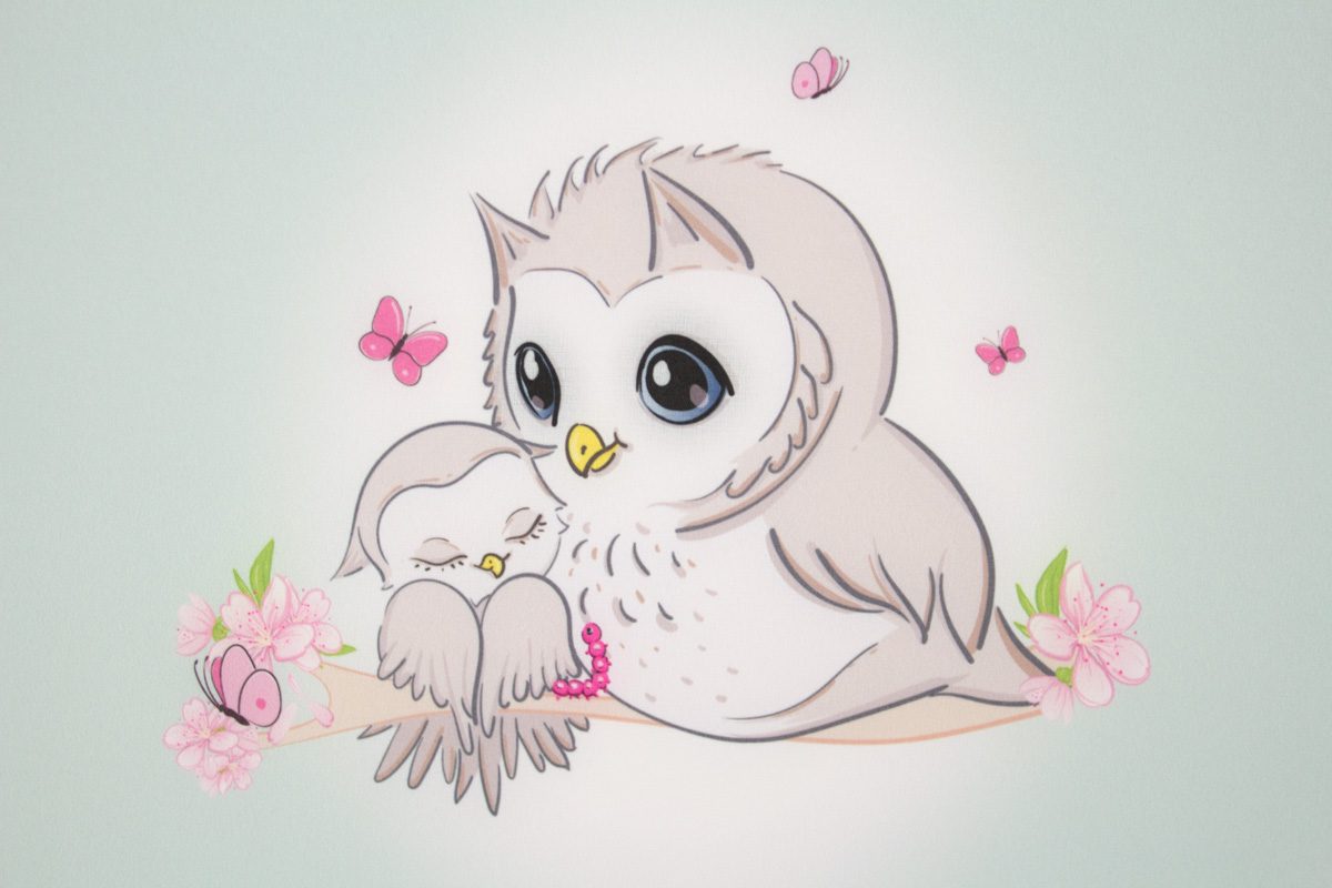 Dazwischen findet ihr das Allover-Motiv mit rosa Blüten, kleinen Schmetterlingen und pinken Raupen.