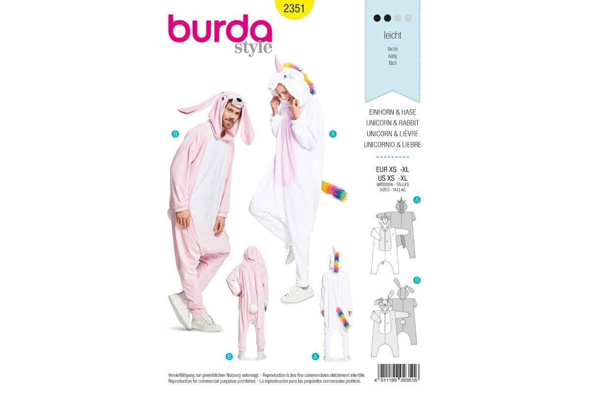 Zwei Faschingskostüme für Erwachsene in lässig-lockerem, weiten Schnitt mit Kapuze. Die Einteiler sind leicht genäht und geben perfekte Bewegungsfreiheit für den Tanz.