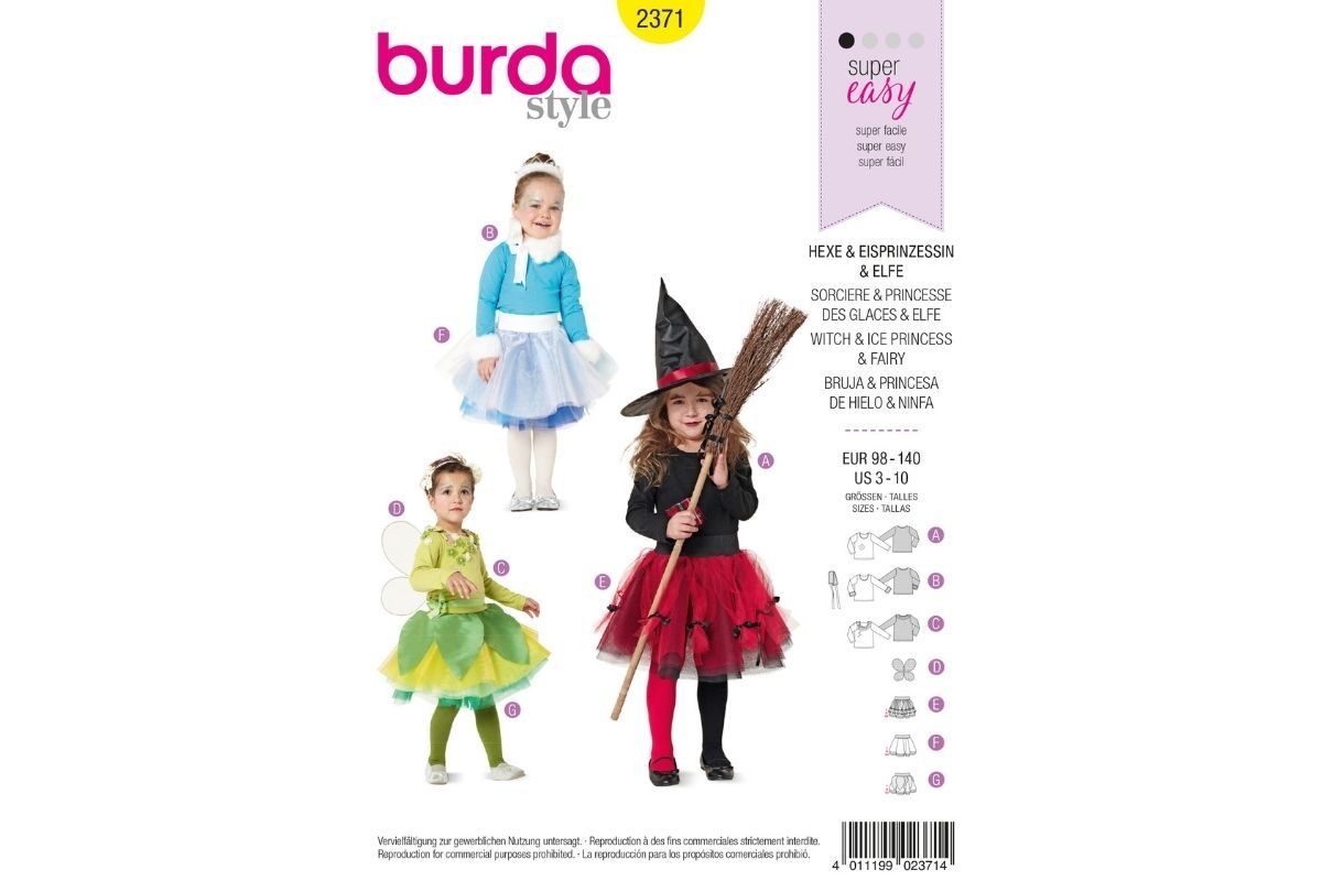 Das ausgeschmückte Shirt und der mehrlagiger Tüllrock mit Gummibund sind die Grundlage für drei effektvolle Faschingskostüme, die kleine Mädchenherzen höher schlagen lassen. Mit passenden Details und Acessoires wird schnell die Hexe, die Eisprinzessin oder Elfe, mit Flügeln zum Festkletten, kreiert.
