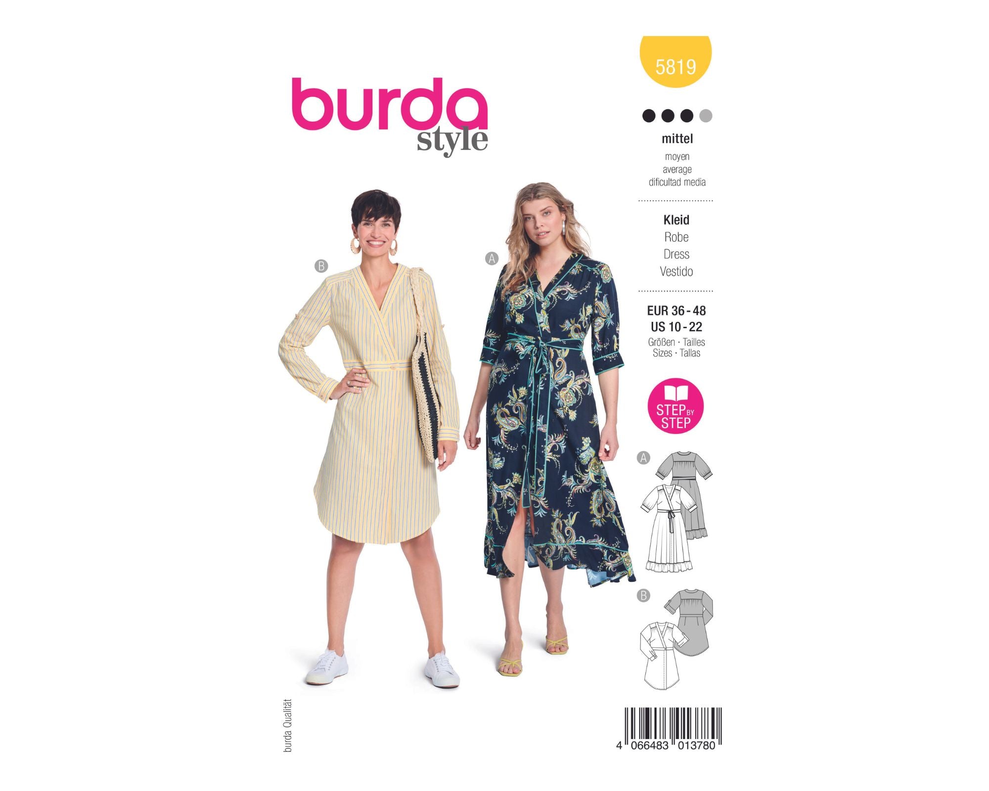 In der Strandbar, der City oder im Büro: Das Wickelkleid mit knalligen Paspeln, extralangem Gürtel und unsichtbaren Druckknöpfen ist das Sommer-Highlight, vor allem, wenn es figurpassend selbstgenäht ist. Für heiße Tage nähen wir das sportlich-elegante Kleid aus luftiger Baumwolle, mit variablen Ärmeln und schmeichelnden Streifen. Stil und Tragekomfort in Einem! Burda style Schwierigkeitsstufe: Level 3.