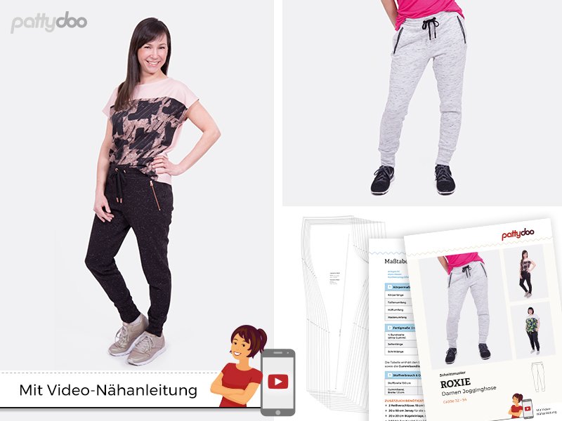 Ob aktiv beim Sport oder gemütlich zu Hause - Jogginghosen sind einfach unverzichtbar im Kleiderschrank! Mit dem Schnittmuster „Roxie“ kannst du dir dieses Basicteil ganz einfach selber nähen. Der Hosenschnitt ist klassisch und bequem, die Verarbeitungsdetails machen den Unterschied! Die Eingriffstaschen mit Reißverschlüssen sind nicht nur praktisch, sondern auch supertrendig - mit dem Nähvideo lernst du sie so zu nähen, dass auch das Innenleben schön sauber ist. Der elastische Hosenbund sitzt sicher und trägt sich angenehm, weil er statt eines breiten zwei schmale Gummibänder enthält. Die Hosensäume werden mit gemütlichen Beinbündchen genäht.
