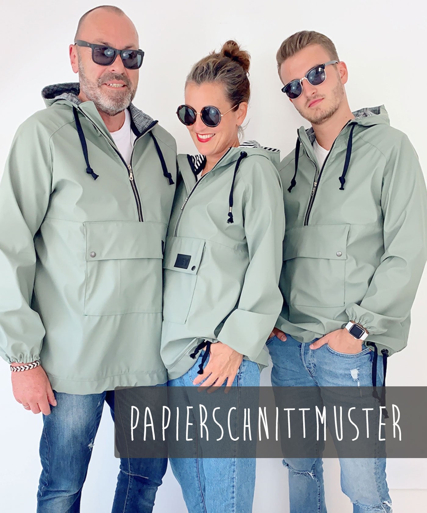 Stoffempfehlung: Für den WIND.breaker sind dir keine Stoffgrenzen gesetzt… Sweatstoffe, Regenjackenstoffe, Canvas, Mantelstoffe, Blusenstoffe – alles geht, nichts muss!