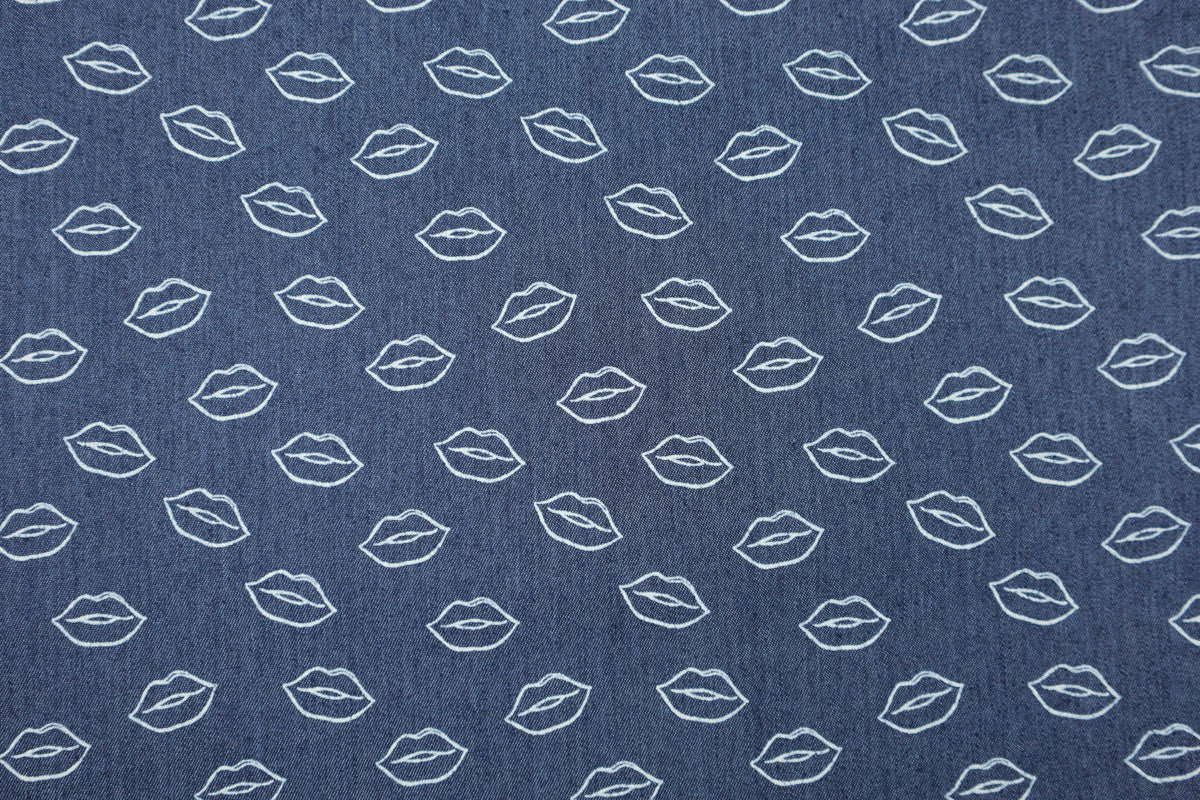 Leichter Denim Jeansstoff mit kleinen Kuss Mündern.