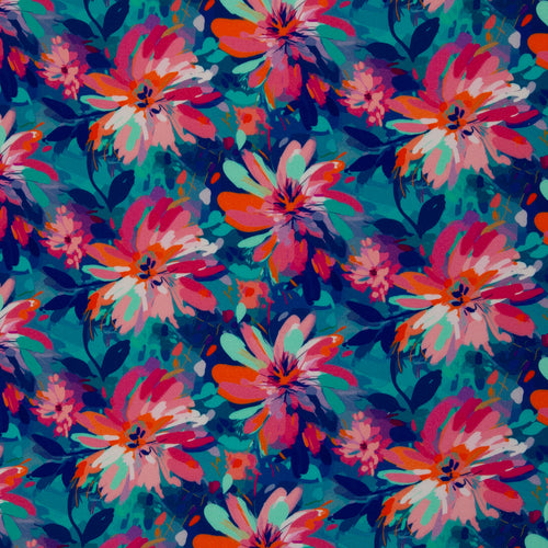 Wer es etwas knalliger mag, wird sich sofort in das bunte Design mit den leuchtenden Blumen verlieben – ein Feuerwerk der Farben! Intensives Türkis und Blau mit Pink, Orange und Rose-Tönen, ein absoluter Traum!