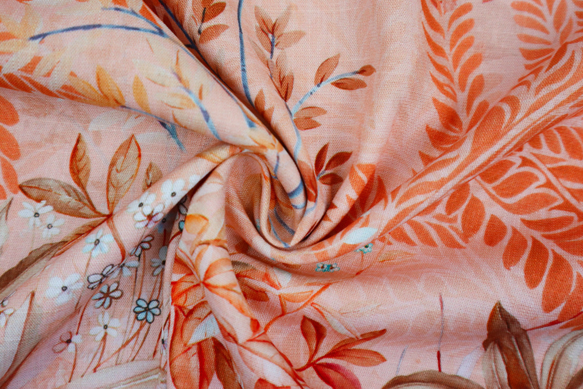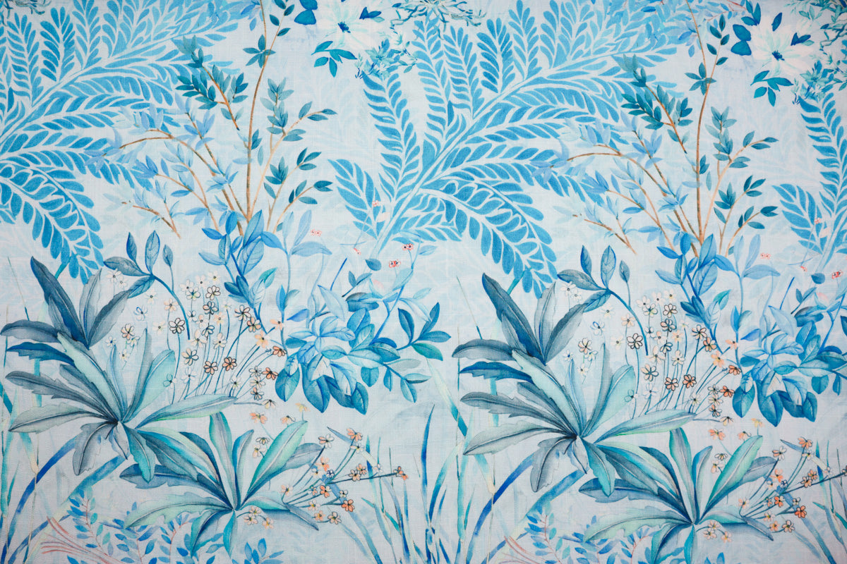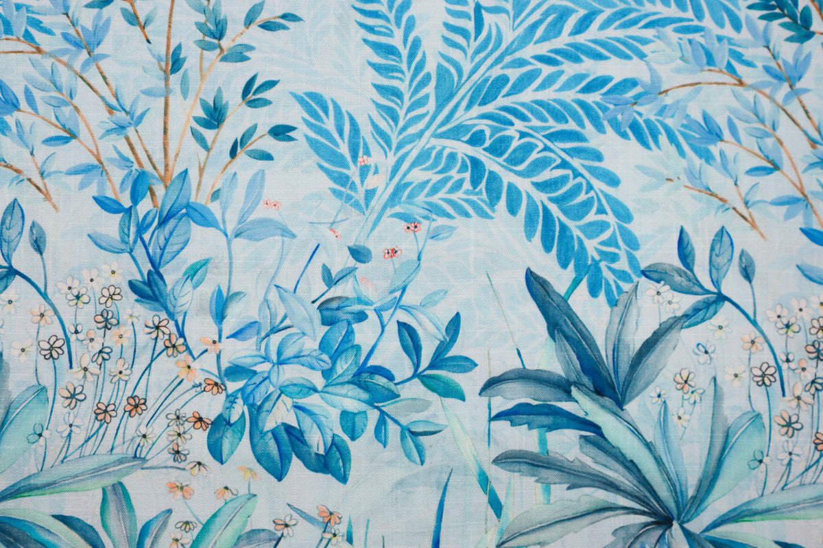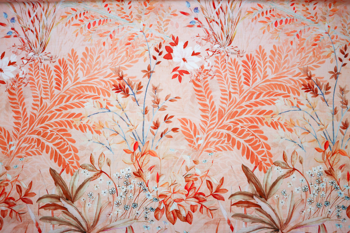 Wunderschöner Viskose-Stretch Stoff mit verspieltem Blumen- und Blättermuster in leichter, weich fallender Qualität.