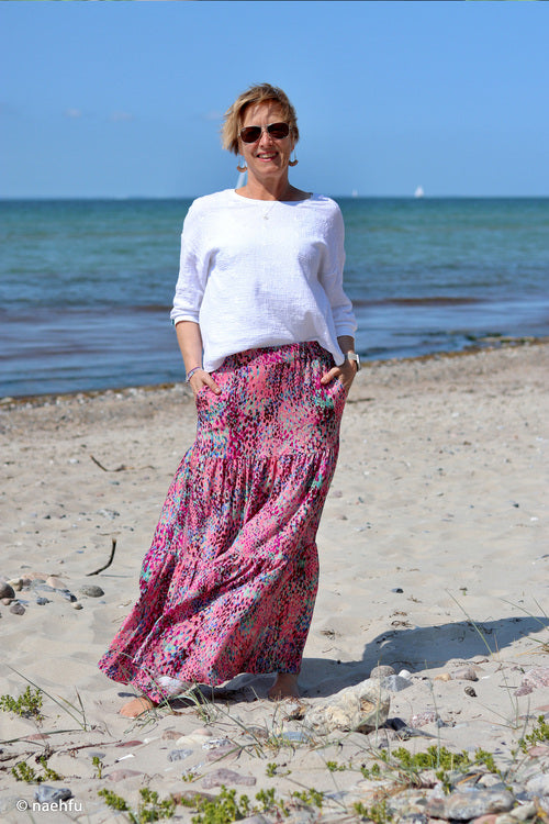 Die fließende Viskosequalität mit tollen Fall ist ideal für Blusen, Tops, Röcke, Maxikleider, leichte Hosen, Tücher und vieles mehr!