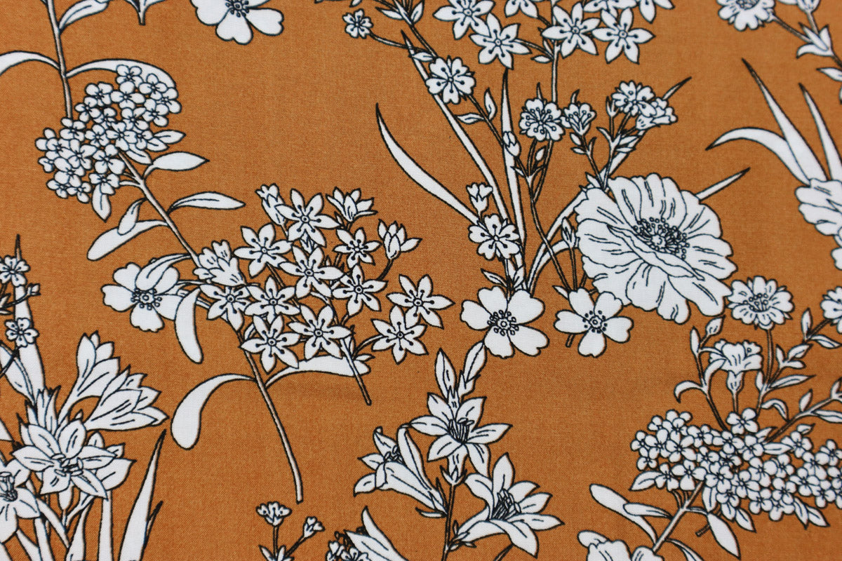 Wunderschönes Blumenmuster auf ockerfarbenem Hintergrund.